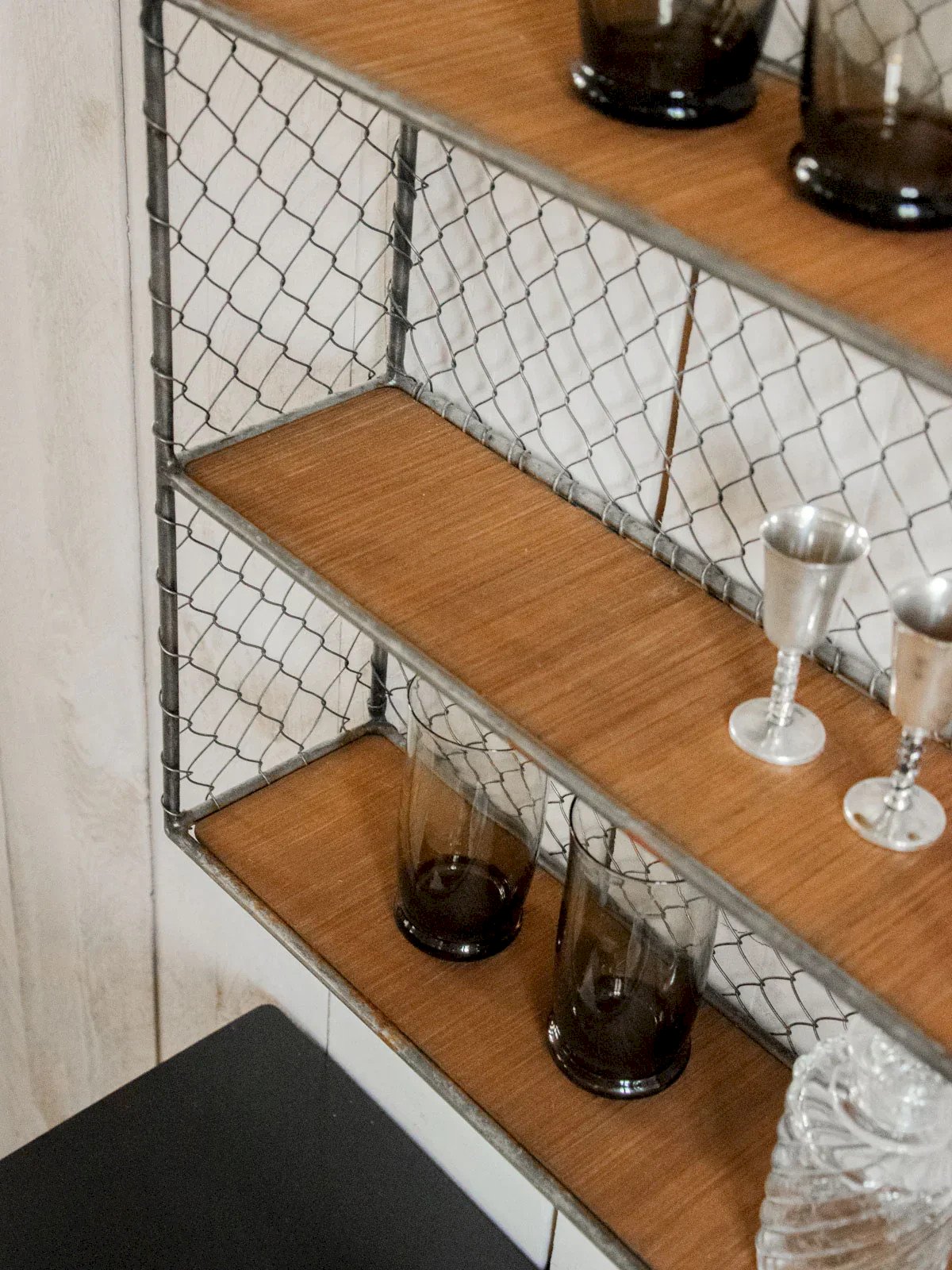 Adopt this wall shelf with an industrial style, combining warm wood shelves and a sleek metal structure. Designed to display books, plants, and everyday objects, it balances capacity and lightness to dress up a wall without weighing it down. Its raw finish and graphic lines integrate well into both a loft and a contemporary kitchen, adding a touch of authenticity and order. Ideal for creating a soft and organized display. Length: 47 cm Width: 14.2 cm Height: 77 cm Niche height: 20 cm Condition: Used: Object that has been used. Object showing a few superficial signs of wear, fully operational and functioning correctly. It may be a demonstration model or an item returned to the store after a short period of use. Any possible imperfections. Brand: Debongout Type: Thrifted product Material: Metal, Steel, Wood Style: Country Custom: Shelves