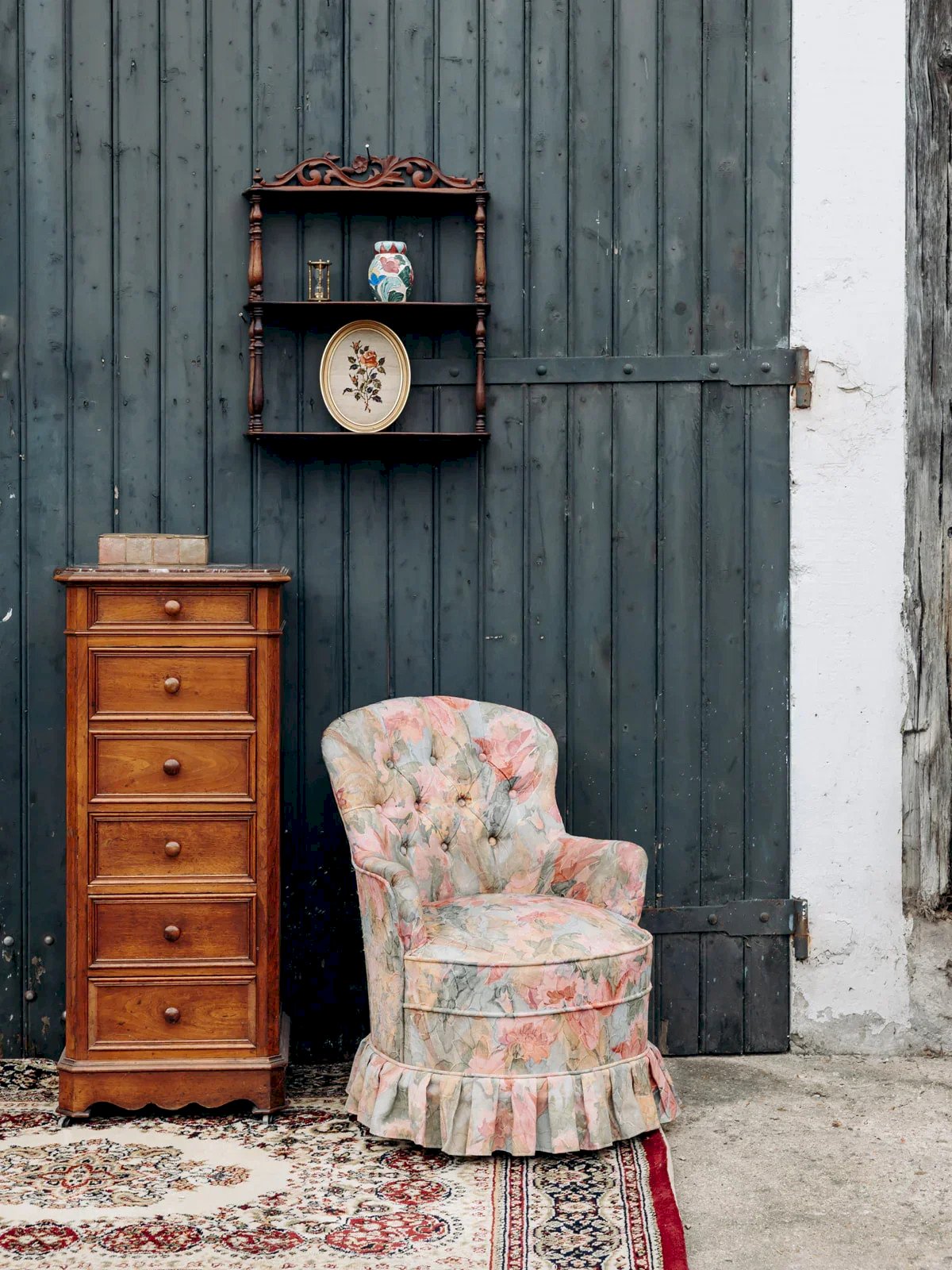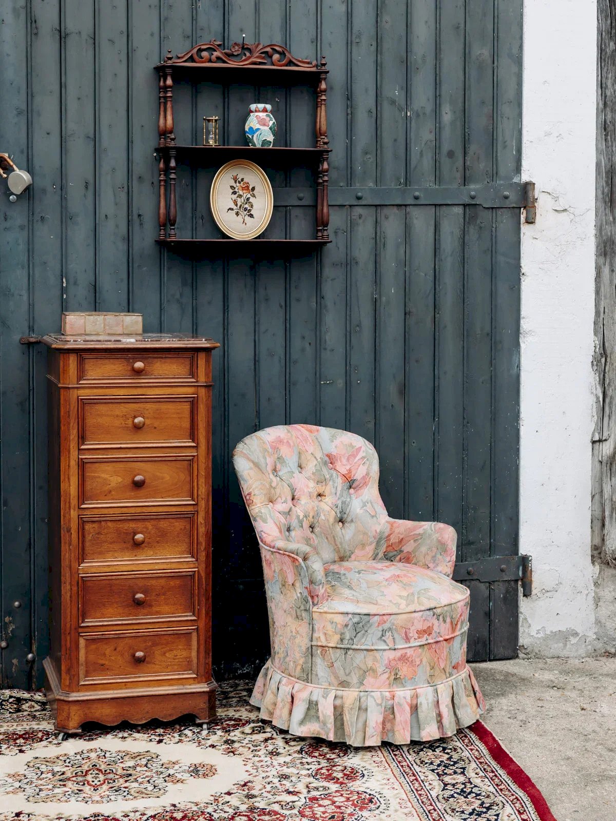Add a touch of elegance to your interior with this charming wooden hanging shelf. Featuring two tiers, it provides practical storage space while showcasing beautiful wooden details. Its integrated hooks make installation easy, while the visible signs of time on the surface add a unique character to each piece. A stylish and functional solution to enhance your decor! Length: 48 cm Width: 13 cm Height: 60 cm Height of the niche: 24 cm Condition: Used: An item that has been used. The item shows some superficial signs of wear, fully operational and functioning correctly. It may be a demonstration model or an item returned to the store after a short period of use. Any imperfections. Brand: Debongout Type: Vintage product Material: Wood Customized: Shelves Style: Country