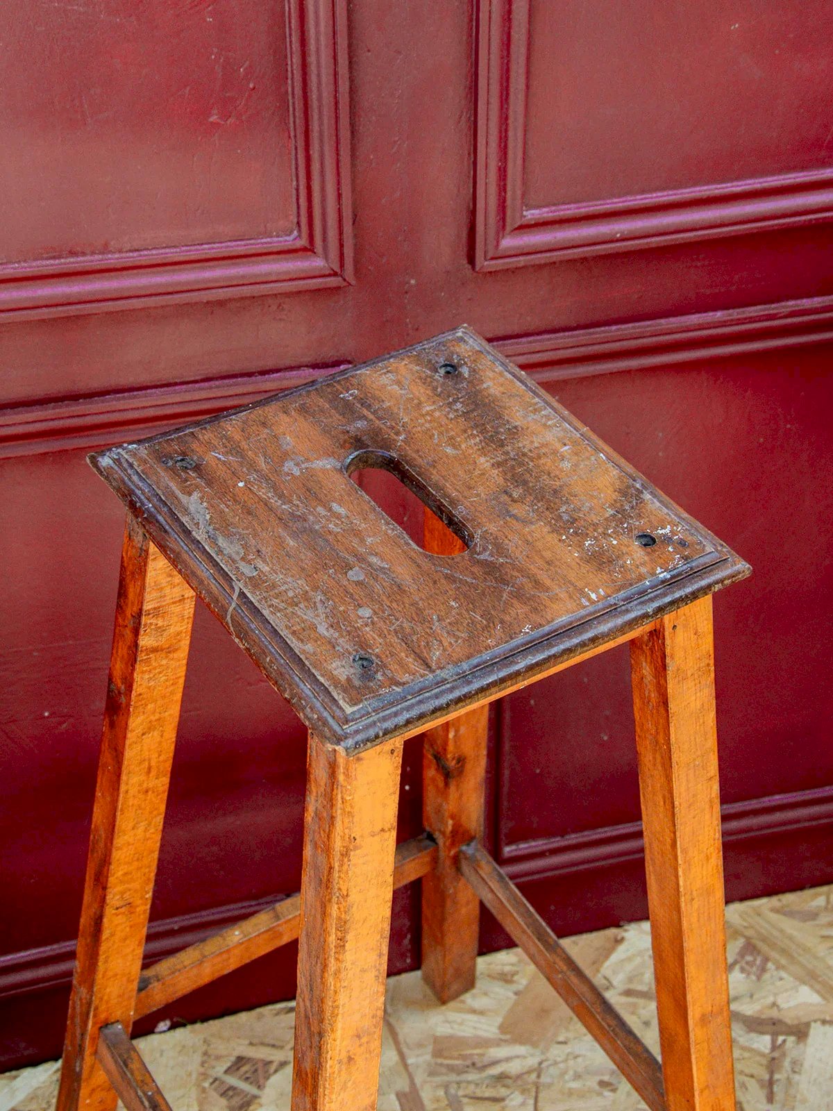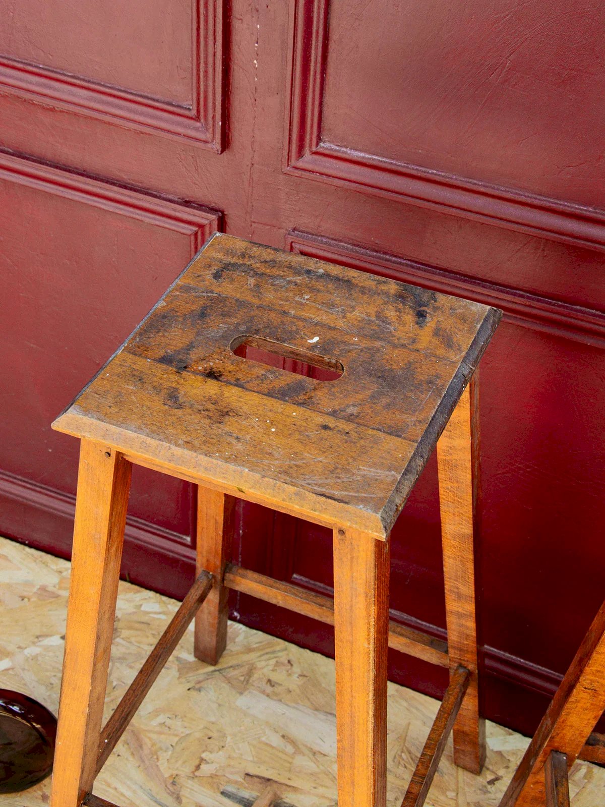 Discover this pair of honey wood high stools, where elegance meets practicality. Their square seats and integrated handles make them easy to move while adding a warm presence to your interior. The small marks of time tell their story, while the natural shades of the seats give them a unique character. An ideal duo to infuse conviviality and charm into your space. Length: 26 cm Width: 25 cm Height: 75.5 cm Condition: Used: Item has been used. Item shows some signs of superficial wear, fully operational and functioning correctly. It may be a demonstration model or an item returned to the store after a short period of use. Any imperfections. Color: Multicolor Height: Wood Width: Bar stools Brand: Debongout Type: Vintage item Material: Wood Style: Country