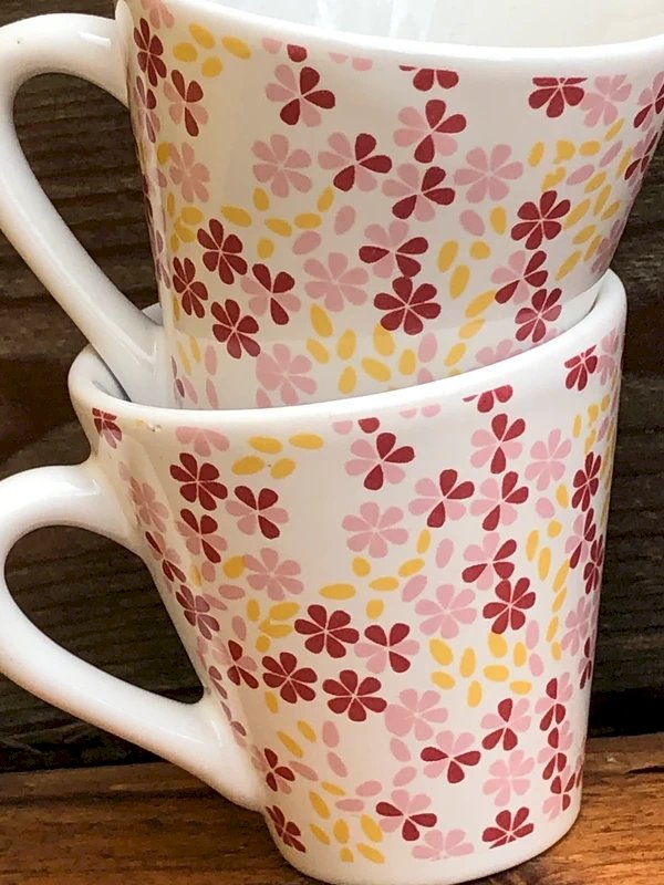 Set of 12 coffee cups and saucers, Victoria 1985 decoration Geneviève Lethu