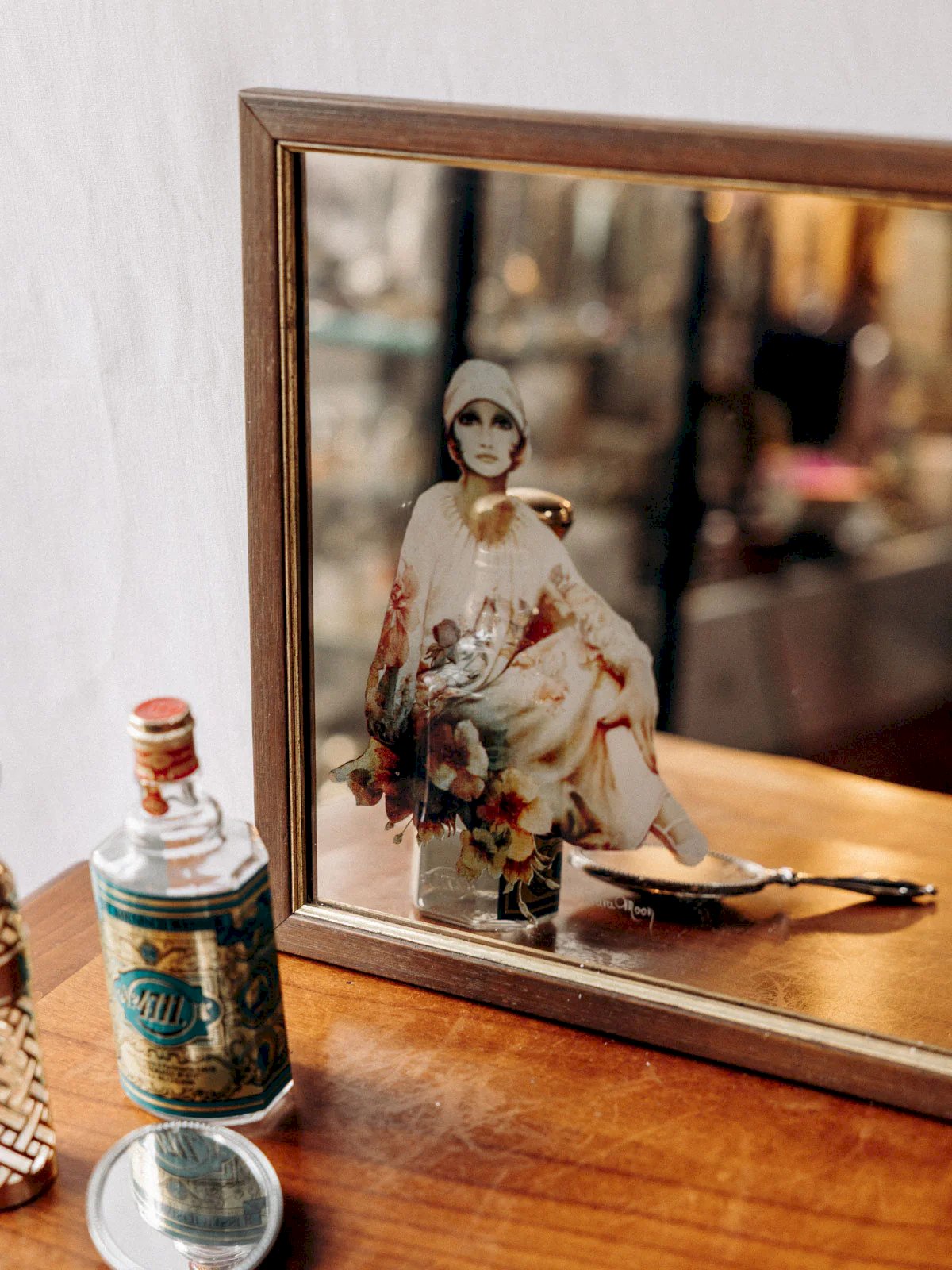 Enhance your interior with this wooden bordered mirror accented with a golden trim, where a woman's drawing adds an artistic and delicate touch. Its vertical format and slender proportions make it ideal above a console, in an entryway, or a bedroom to capture light without weighing down the space. The warmth of the wood combined with the golden finish creates an elegant and intimate atmosphere, perfect for punctuating a contemporary or vintage decor, while remaining a discreet art object. Length: 50 cm Width: 2 cm Height: 35 cm Condition: Used: Item that has been used. Item showing some superficial signs of wear... Used: Item that has been used. Item showing some superficial signs of wear, fully operational and functioning correctly. It may be a demonstration model or an item returned to the store after a short period of use. potential imperfections. Brand: Debongout Type: Vintage product Material: Wood, Glass Style: Country