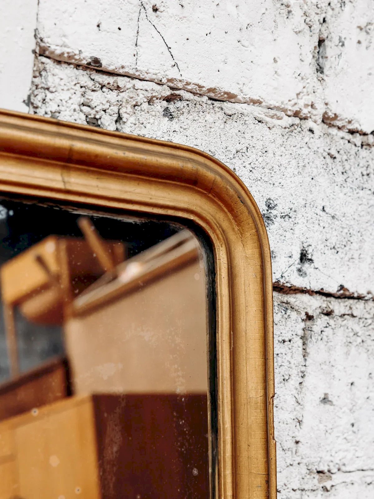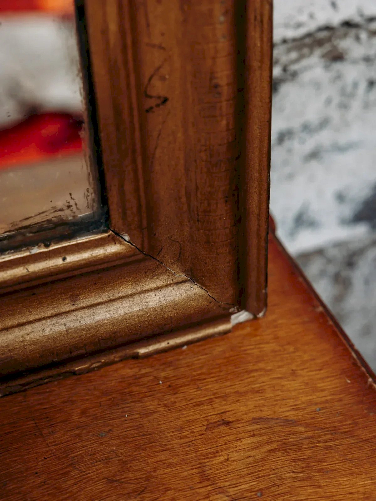 Discover this magnificent Louis Philippe mirror, a unique piece that combines elegance and the charm of the old. Its eglomisé and its pique give it a refined look, perfect for enhancing your interior. Although it has a small chip at the top, this does not detract from its timeless character and its ability to dress all your rooms with distinction. A beautiful vintage touch to add to your decor! Width: 60 cm Height: 87 cm A brief history of the Louis Philippe mirror At the time, the mirrors of great monarchs were recognizable by their cornices loaded with decorations. However, during the reign of Louis-Philippe, a bourgeois style developed, less concerned with originality and more focused on comfort. The Louis Philippe mirrors aimed to be more sober and streamlined. Unlike mirrors from previous eras, the wood is no longer sculpted but molded and coated with a glue primer. The top of the mirror frame is rounded, in the shape of a gendarme's hat. For decoration, pearls or acanthus leaves at the bottom highlight the cornice with a gilded effect that illuminates the whole piece. Large mirrors installed over fireplaces bring clarity and perspective to living spaces. Condition: Used: Item has been used. Item shows some superficial signs of wear... Used: Item has been used. Item shows some superficial signs of wear, fully operational and functioning correctly. It may be a demonstration model or an item returned to the store after a short period of use. any possible imperfections. Brand: Debongout Type: Vintage product Material: Glass Style: Country