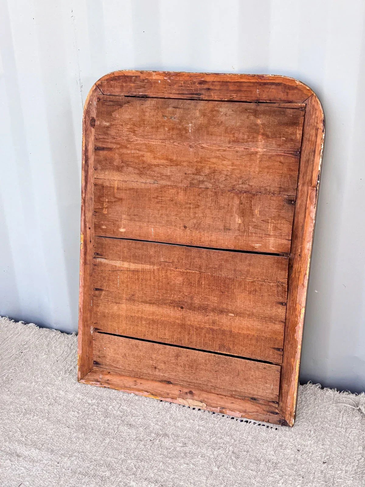 Discover our beautiful large Louis Philippe mirror, delicately gilded and parqueted, which will bring a touch of elegance to your interior. Although there are a few slight chips, they do not detract from its aesthetic or utility. This mirror, a true centerpiece, reflects the beauty of your space while adding a timeless dimension to your decor. Ideal for capturing light and visually enlarging your room, it is a wise choice for lovers of refined style. Length: 89 cm Width: 63 cm Depth: 4 cm A brief history of the Louis Philippe mirror At that time, the mirrors of great monarchs were recognizable by their cornices laden with decorations. However, during the reign of Louis-Philippe, a bourgeois style developed, less concerned with originality than with comfort. The Louis-Philippe mirrors were designed to be more sober and streamlined. Unlike mirrors from earlier periods, the wood is no longer carved but molded and coated with a glue primer. The top of the mirror frame is rounded, shaped like a gendarme's hat. For decoration, pearls or acanthus leaves at the bottom emphasize the cornice with a golden leaf effect that illuminates the whole piece. Large mirrors placed on fireplaces bring clarity and perspective to living spaces. Condition: Used: Item has been used. Item shows some superficial signs of wear, ... Used: Item has been used. Item shows some superficial signs of wear, fully operational and functioning correctly. It may be a demonstration model or an item returned to the store after a short period of use. The possible imperfections. Brand: Debongout Type: Thrifted product Material: Plaster, Wood Style: Country