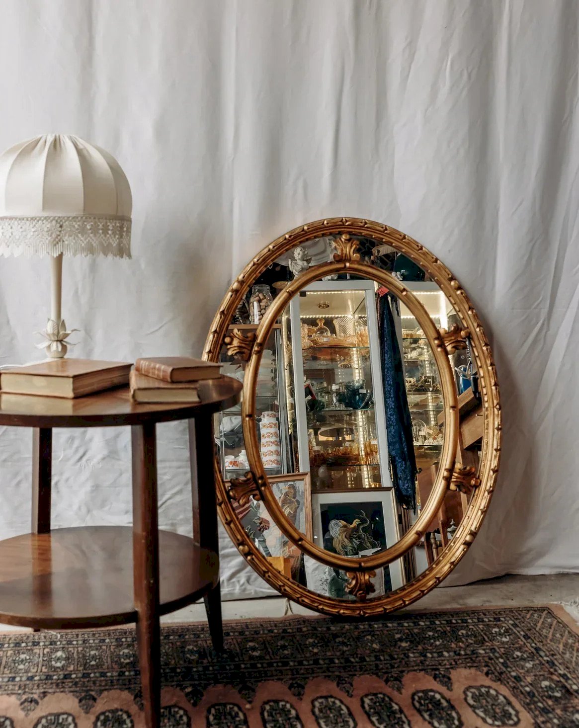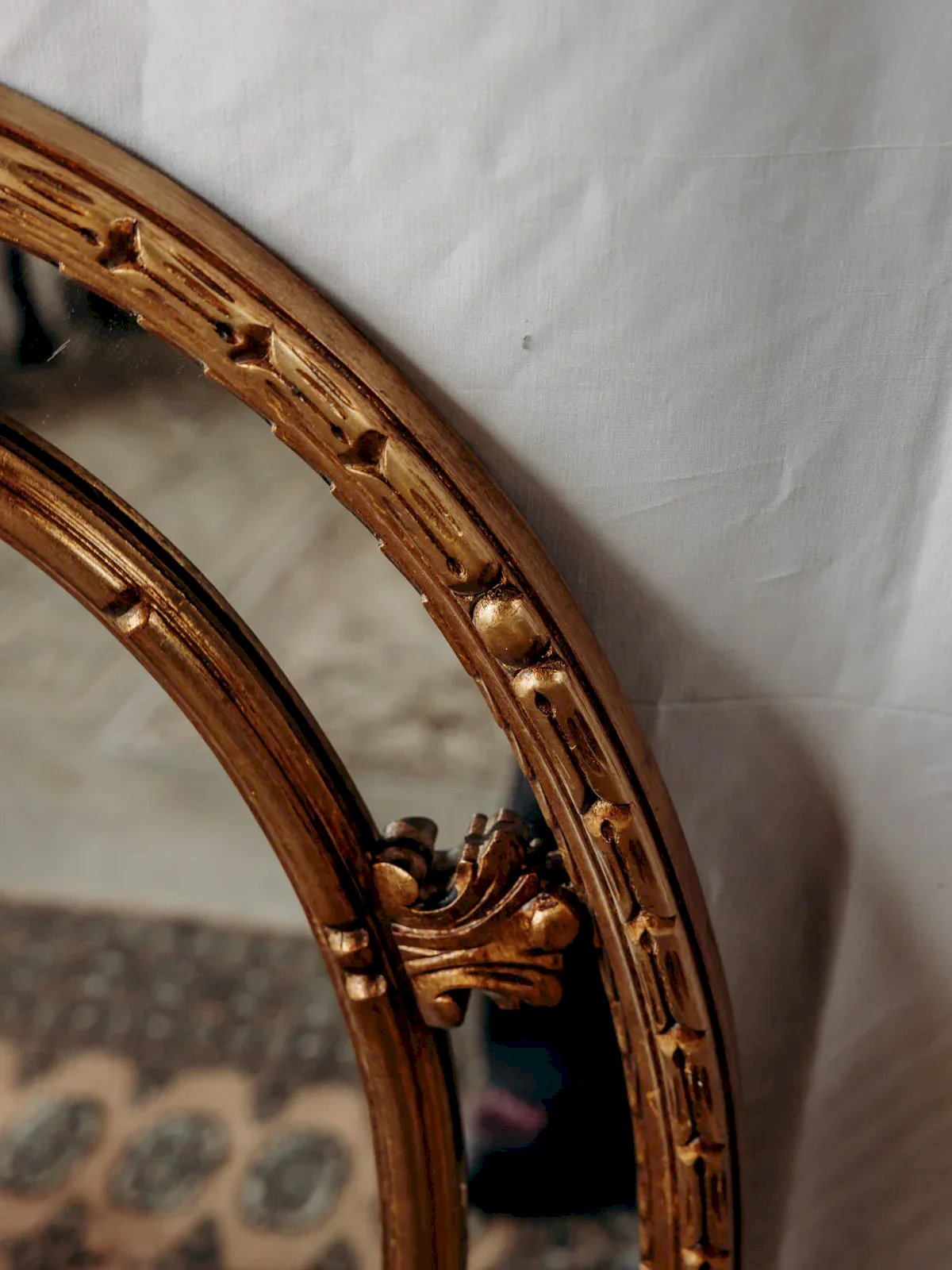 Enhance your interior with this large oval mirror featuring a golden wood frame, adorned with beautiful carved details that convey a subtle elegance. Its ample silhouette and soft gilding reflect light to add depth to a living room, an entryway, or above a fireplace. The crafted wood brings warmth and authenticity, while the delicate ornaments emphasize a classic and refined aesthetic. Ideal for structuring a wall and creating a welcoming and bright atmosphere. Length: 70 cm Width: 4 cm Height: 93 cm Condition: Used: Item that has been used. Item showing some superficial signs of wear... Used: Item that has been used. Item showing some superficial signs of wear, fully operational and functioning correctly. It may be a demonstration model or an item returned to the store after a short period of use. Any potential imperfections. Brand: Debongout Type: Vintage product Material: Wood Style: Country.