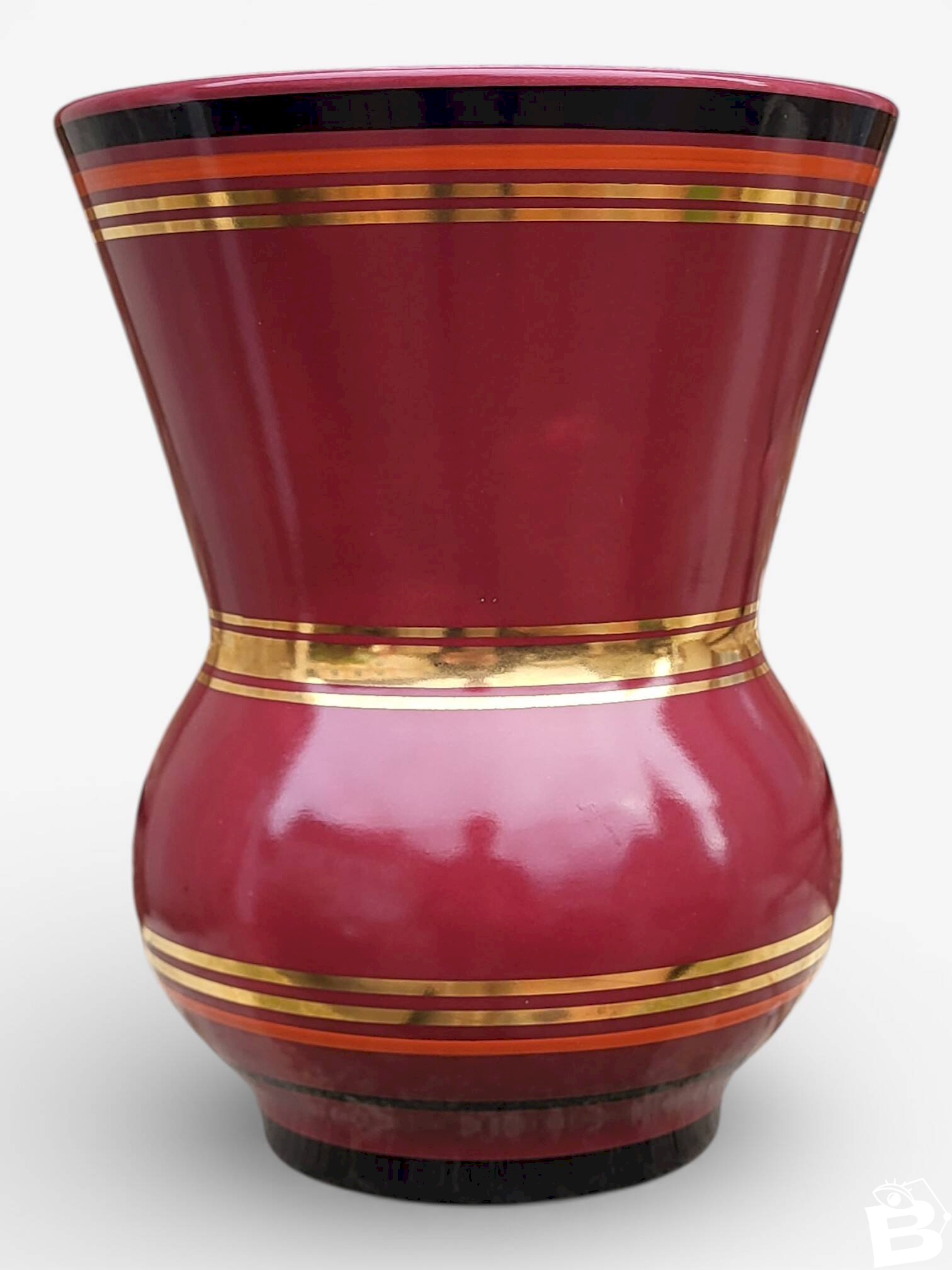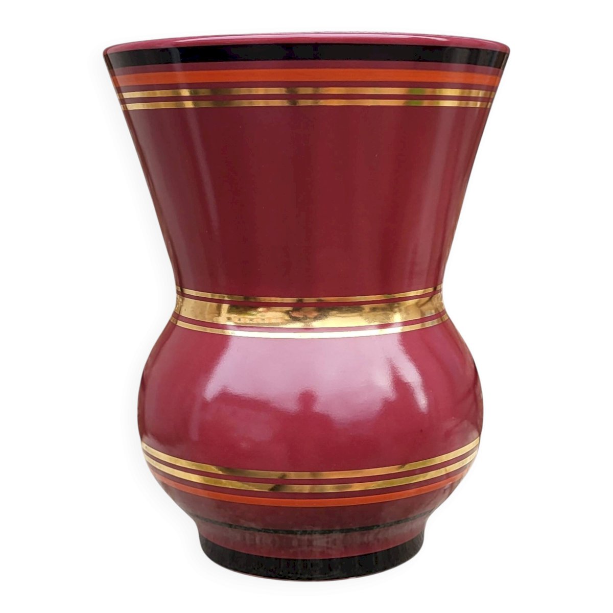 Earthenware vase from Gien 1940-60 / Stamp on the reverse and impressed mark of the decorator. Typical work from the 50s-60s. High quality and great finesse.