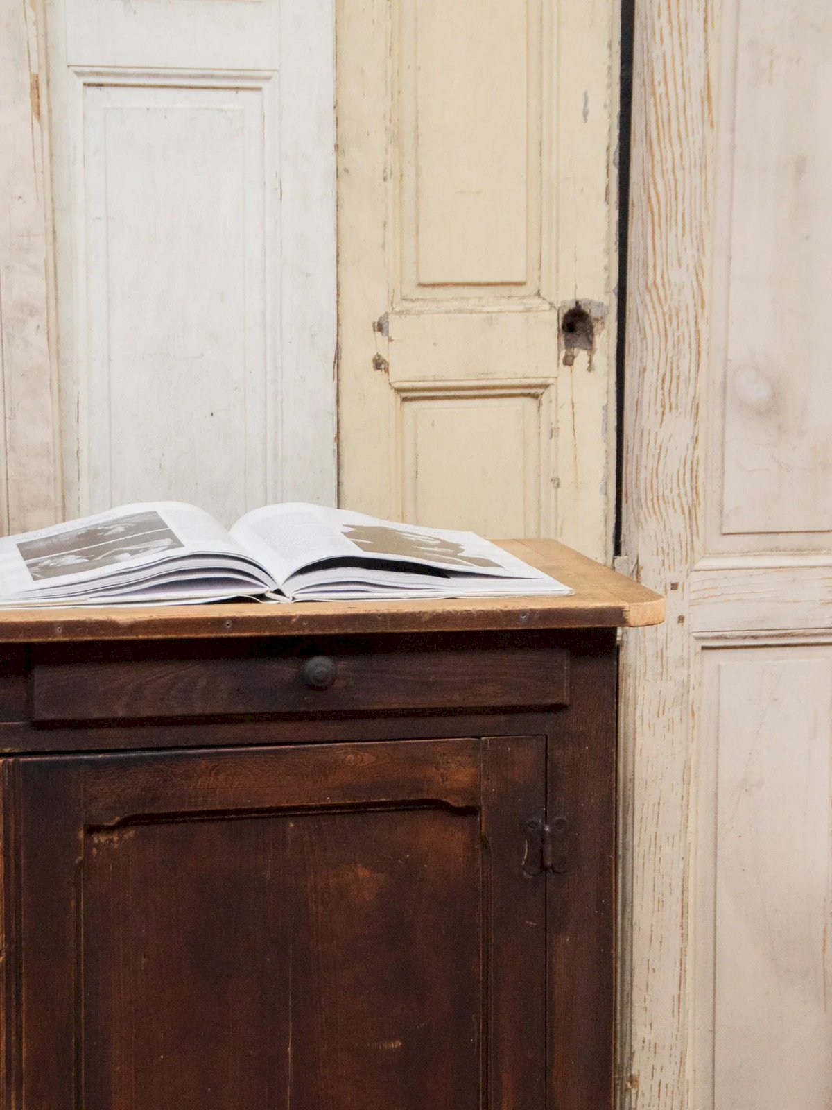Enhance your interior with this Parisian wooden buffet, elegantly patinated, accented with a small golden lock and set on graceful tapered legs; its two fine drawers and two interior shelves provide organized and discreet storage, perfect for dishware or table linens, while its patinated top invites the display of decorative objects; compact and with balanced proportions, it adds a warm and refined touch to an entryway or dining room. Length: 110 cm Width: 43 cm Height: 100 cm Drawer height: 5 cm Niche height: 26 / 21 / 28 cm Condition: Used: Item has been used. The item shows some superficial signs of wear, ...Used: Item has been used. The item shows some superficial signs of wear but is fully operational and functions correctly. It may be a demonstration model or an item returned to the store after a short period of use. any imperfections. Brand: Debongout Type: Vintage product Material: Wood Style: Country Custom: Buffets