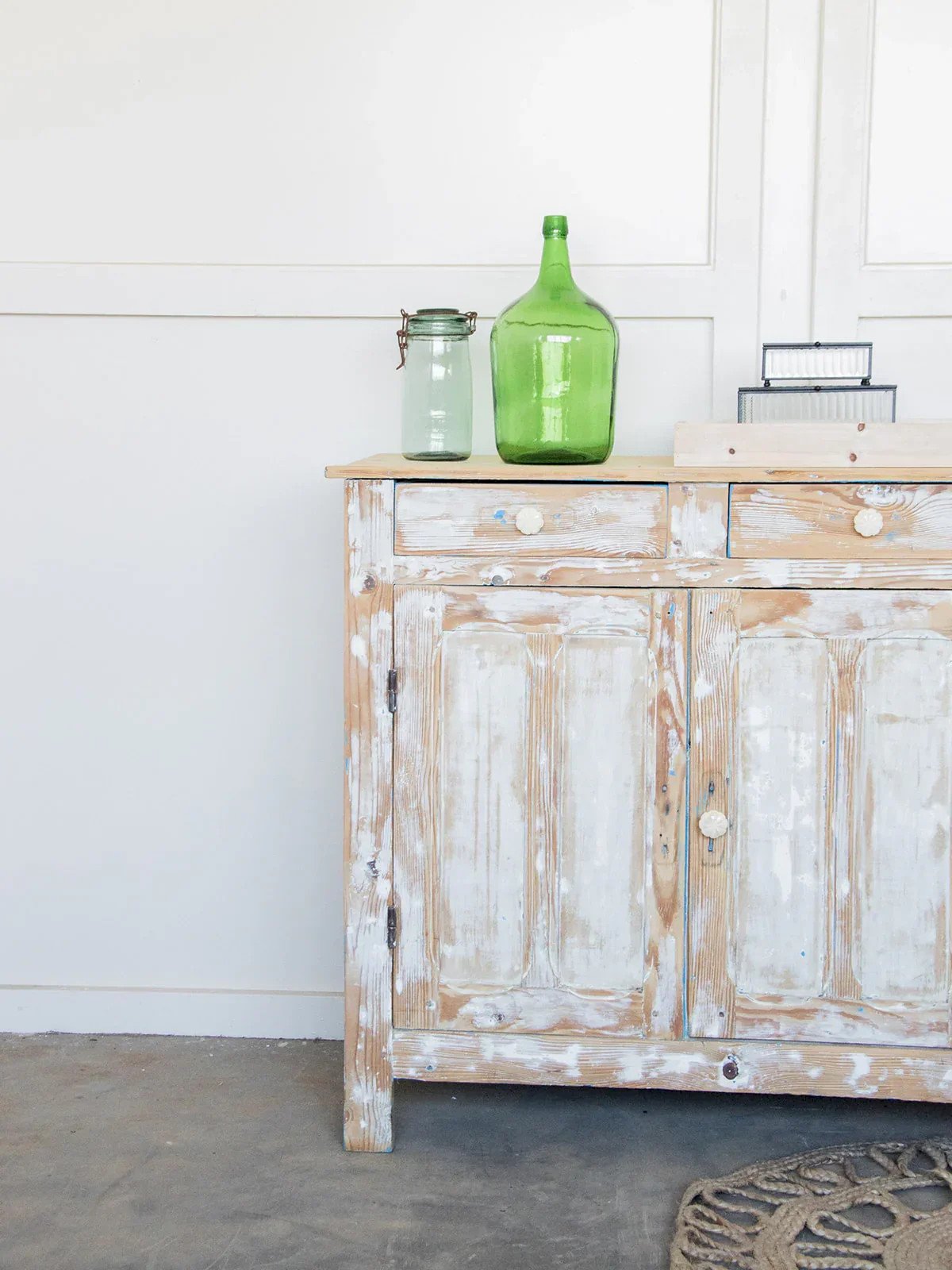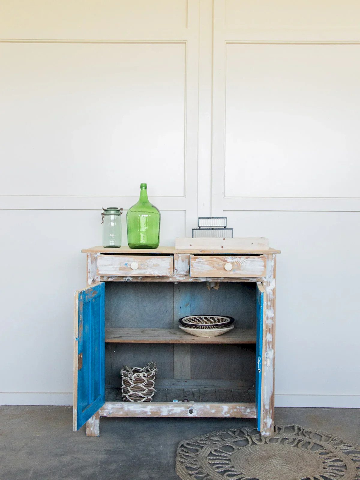 Discover this patinated Parisian sideboard, perfect as is or ready to be repainted according to your wishes. It features two drawers and two cabinets providing ample storage space. A discreet hole at the back allows for cable management, ideal for modern use. Some traces of its former blue paint add charm and testify to its history. An authentic and practical piece of furniture to enhance your interior! Length: 99 cm Height: 94.5 cm Total depth: 48 cm Interior spacing: Length: 92 cm Height: 34 cm Depth: 40 cm Condition: Used: Item that has been utilized. Item showing some signs of superficial wear... Used: Item that has been utilized. Item showing some signs of superficial wear, fully operational and functioning correctly. It may be a display model or an item returned to the store after a short period of use. the possible imperfections. Brand: Debongout Type: Thrifted product Material: Wood Style: Country Custom: Sideboards