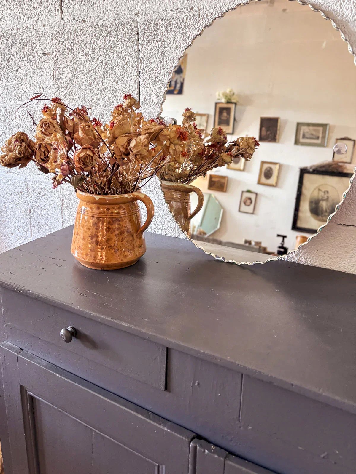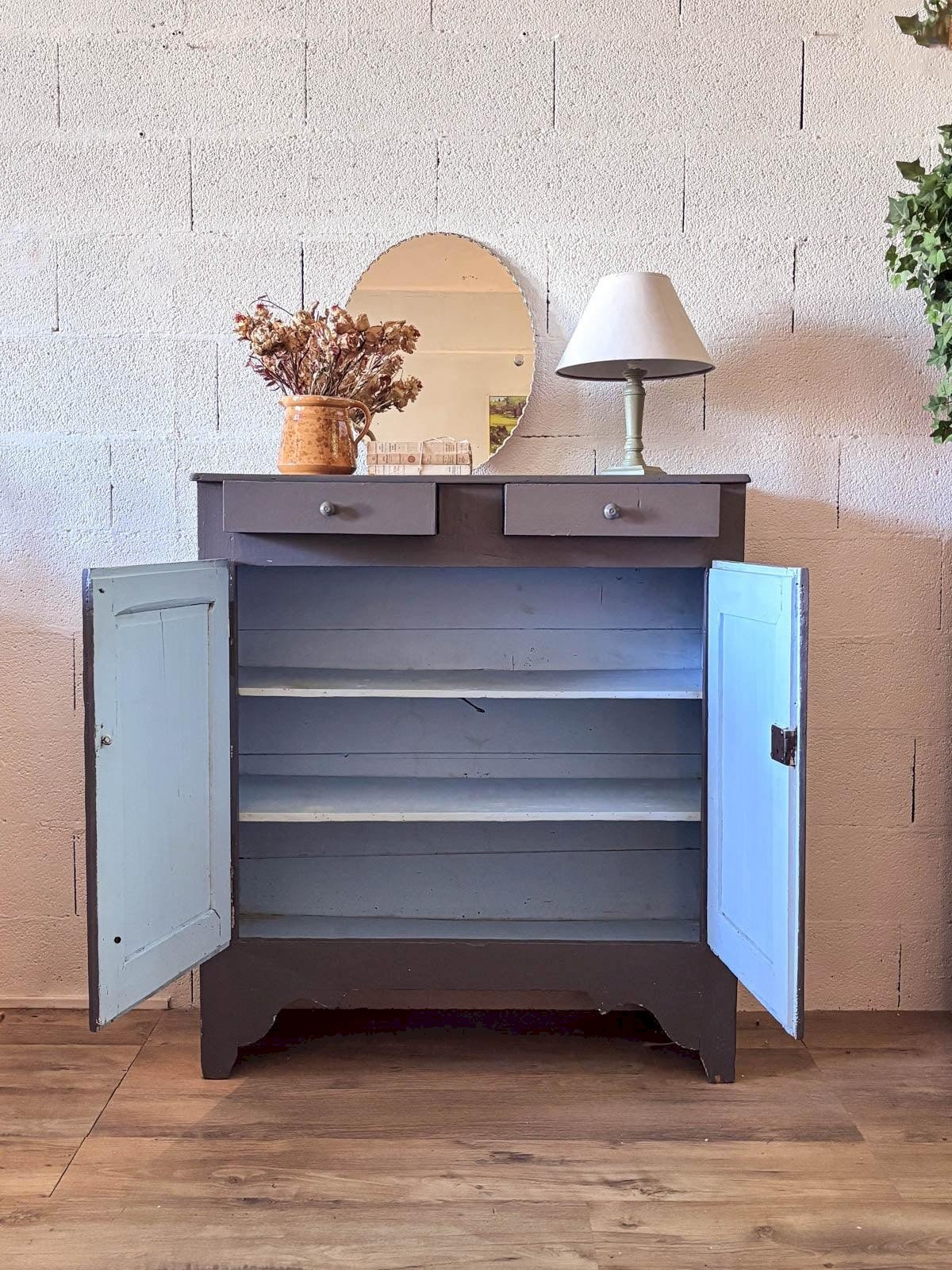 Discover the Parisian pine sideboard, a chic and functional piece of furniture that will enhance your interior. Equipped with two practical drawers and two open shelves, it offers an ideal storage space for your daily items. Its doors, which close with an elegant latch, add a vintage touch while ensuring the security of your belongings. Its natural pine finish will bring warmth and authenticity to your decor. A must-have for combining style and practicality! Signs of time that do not detract from its charm. Length: 99 cm Width: 37 cm Height: 110.5 cm Condition: Used: Item that has been used. Item showing some superficial signs of wear, fully operational and functioning correctly. It may be a display model or an item returned to the store after a short period of use. Any possible imperfections. Brand: Debongout Type: Vintage product Material: Spruce Style: Country Customized: Sideboards