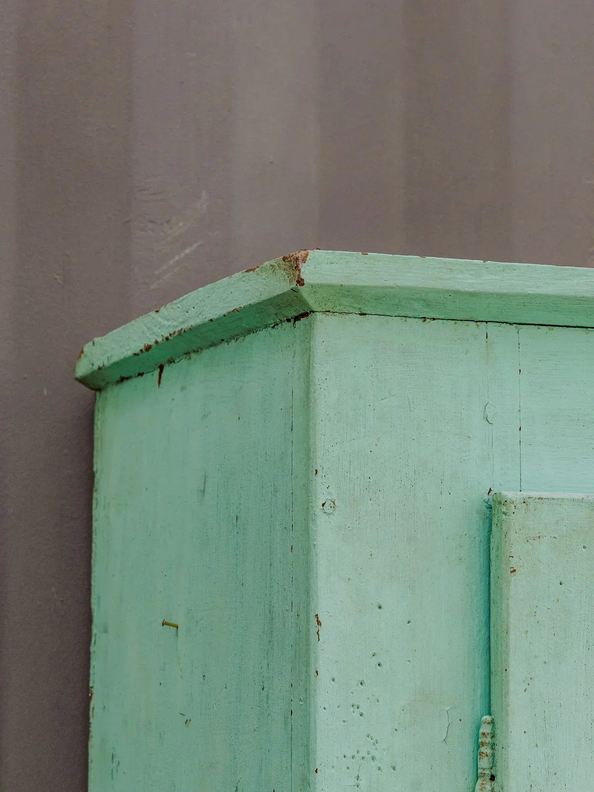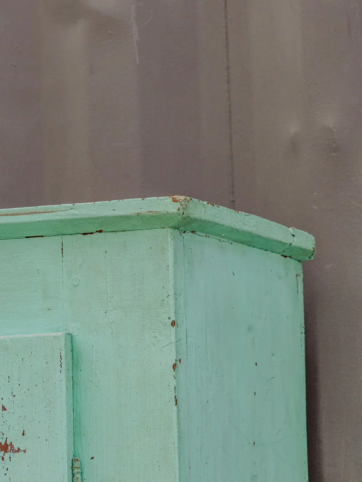 Enhance your interior with this tall turquoise patinated wood sideboard, which adds a delicate and colorful retro touch. Its slender silhouette fits easily into a living room, kitchen, or hallway. Its three interior shelves offer ample storage space for dishes, linens, or your decorative items, while the functional latch lock adds a contemporary and secure detail. The patina creates a soft and vintage atmosphere. Some signs of use enhance its authenticity. Length: 118 cm Width: 40.5 cm Height: 151 cm Condition: Used: Item has been used. Item shows some superficial signs of wear, fully operational and functioning correctly. It may be a demonstration model or a product returned to the store after a short period of use. Any potential imperfections. Brand: Debongout Type: Thrifted product Material: Wood Style: Country Personalized: Sideboards