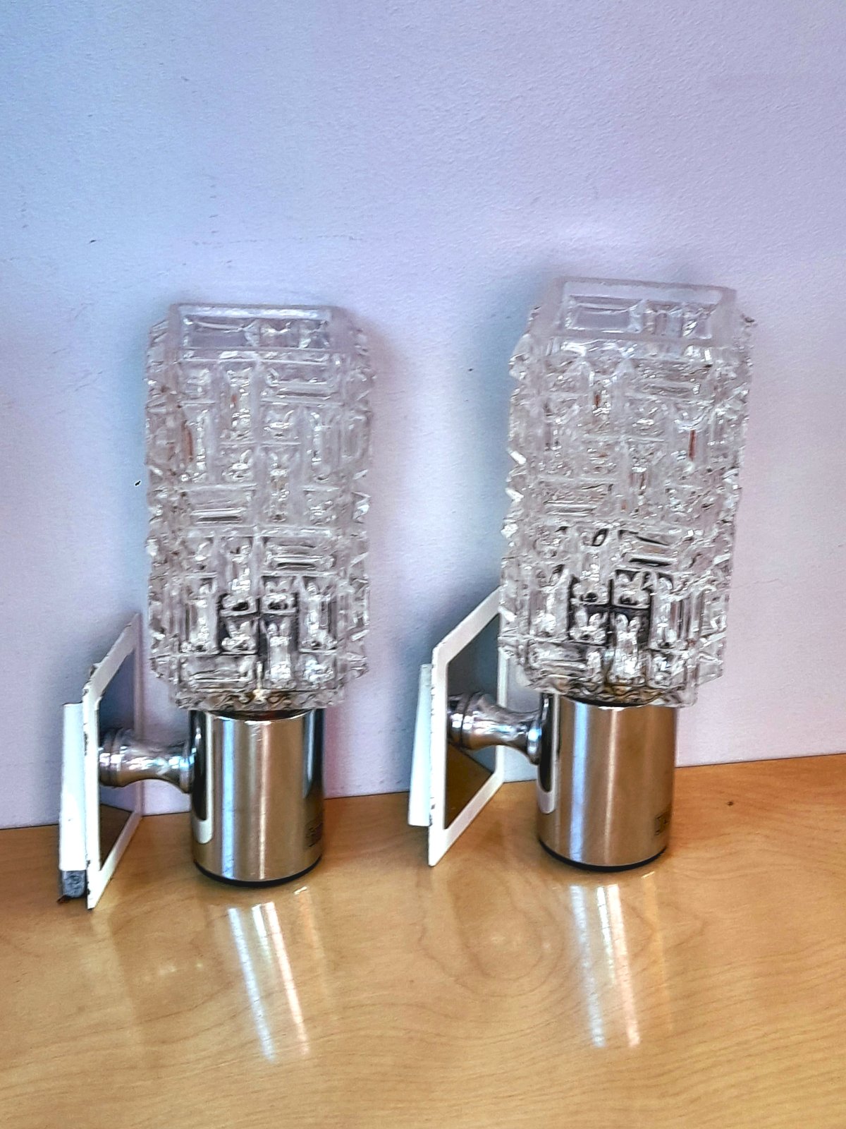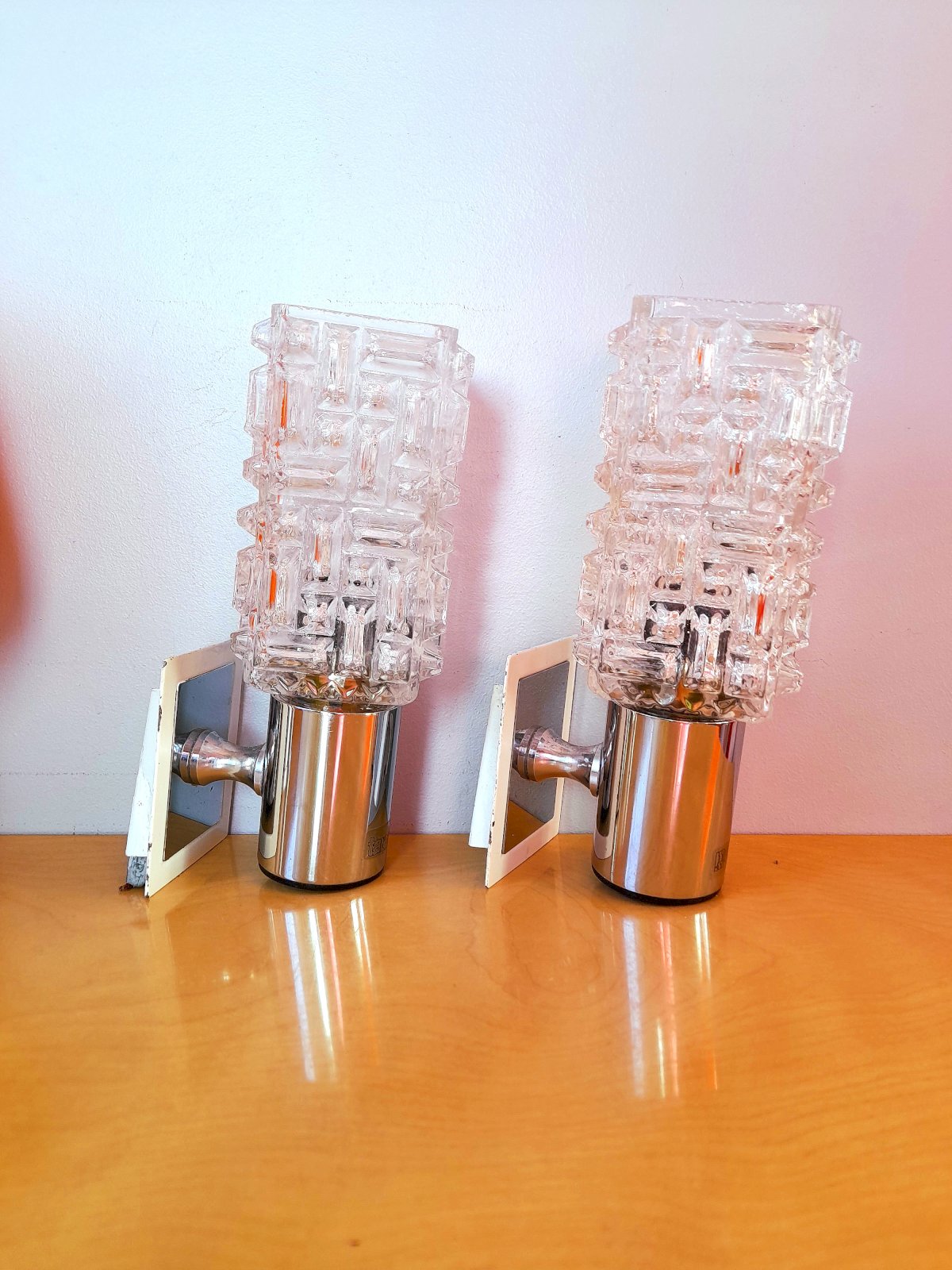 Glass and chrome metal wall sconces Targetti 1970 Vintage Silver Metal/Glass Targetti