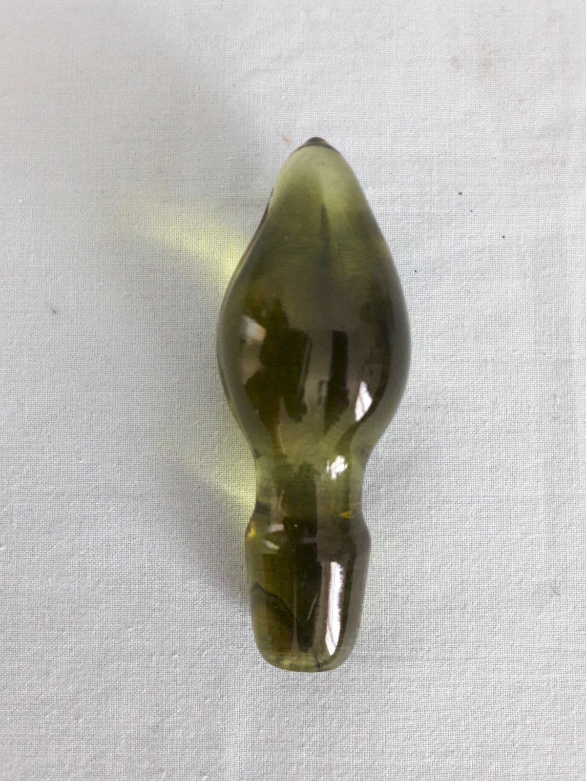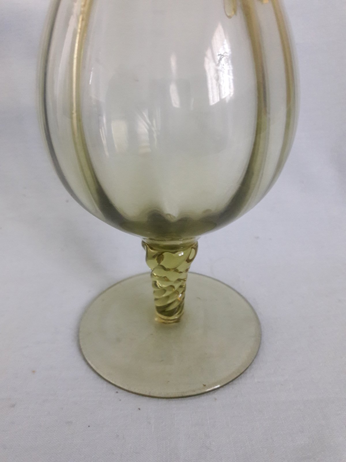 Small glass liqueur carafe with its stopper, in green hue. Good overall condition, with some original irregularities in the glass (see photos), no chips or cracks. Dimensions: height 27 cm, width 9.5 cm, depth 8 cm. Weight 0.3 kg. Do not hesitate to contact us for any further information and/or to make your offers. See my other items for sale.