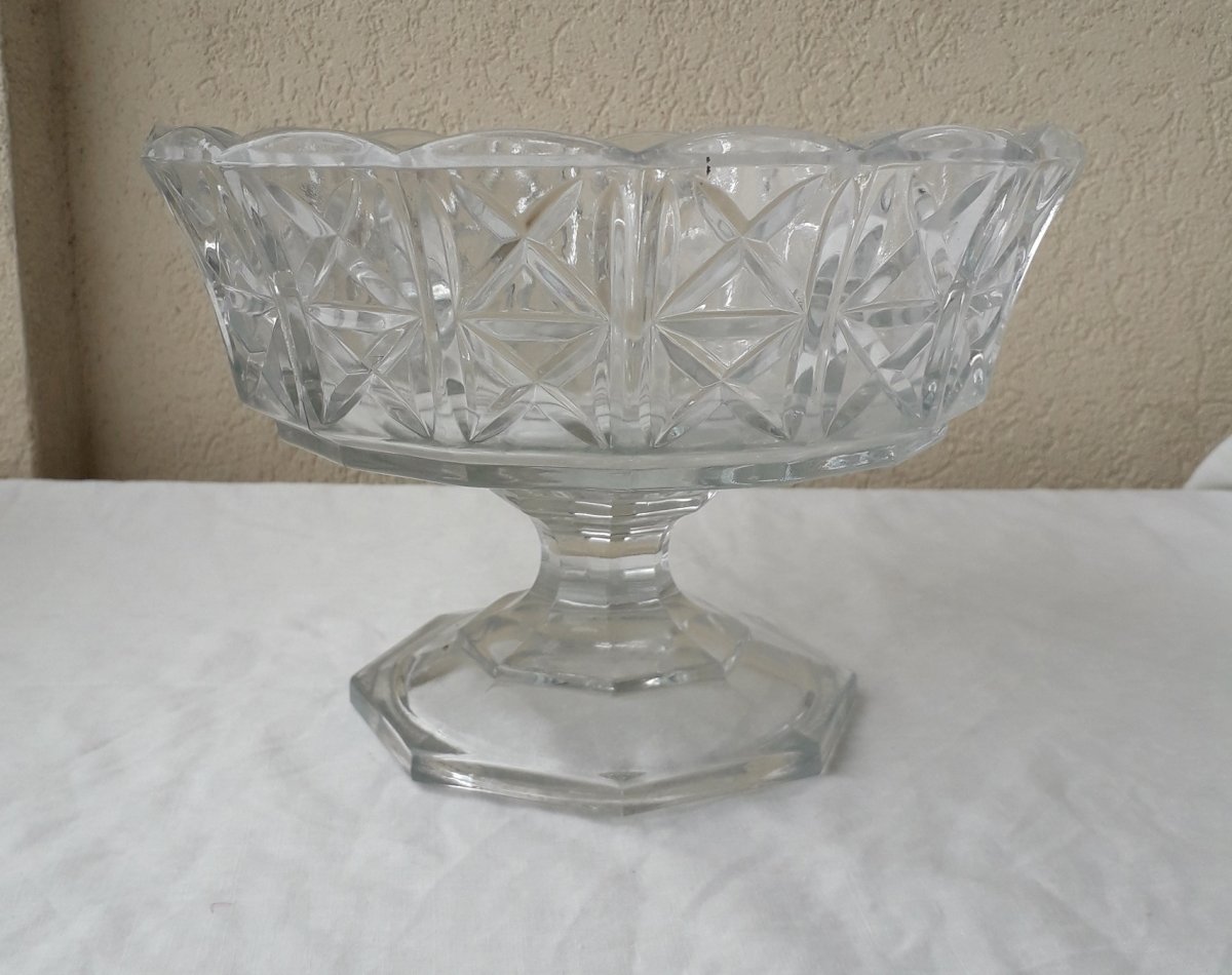 Old cut glass bowl (very thick) on a pedestal,Italian made, of very good quality.