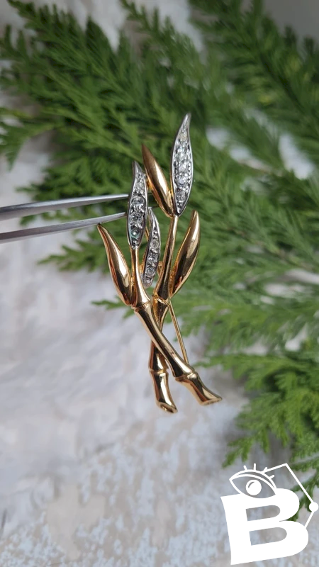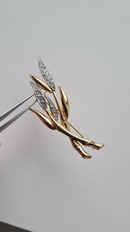 Golden bamboo brooch with rhinestones and gold plating Metal