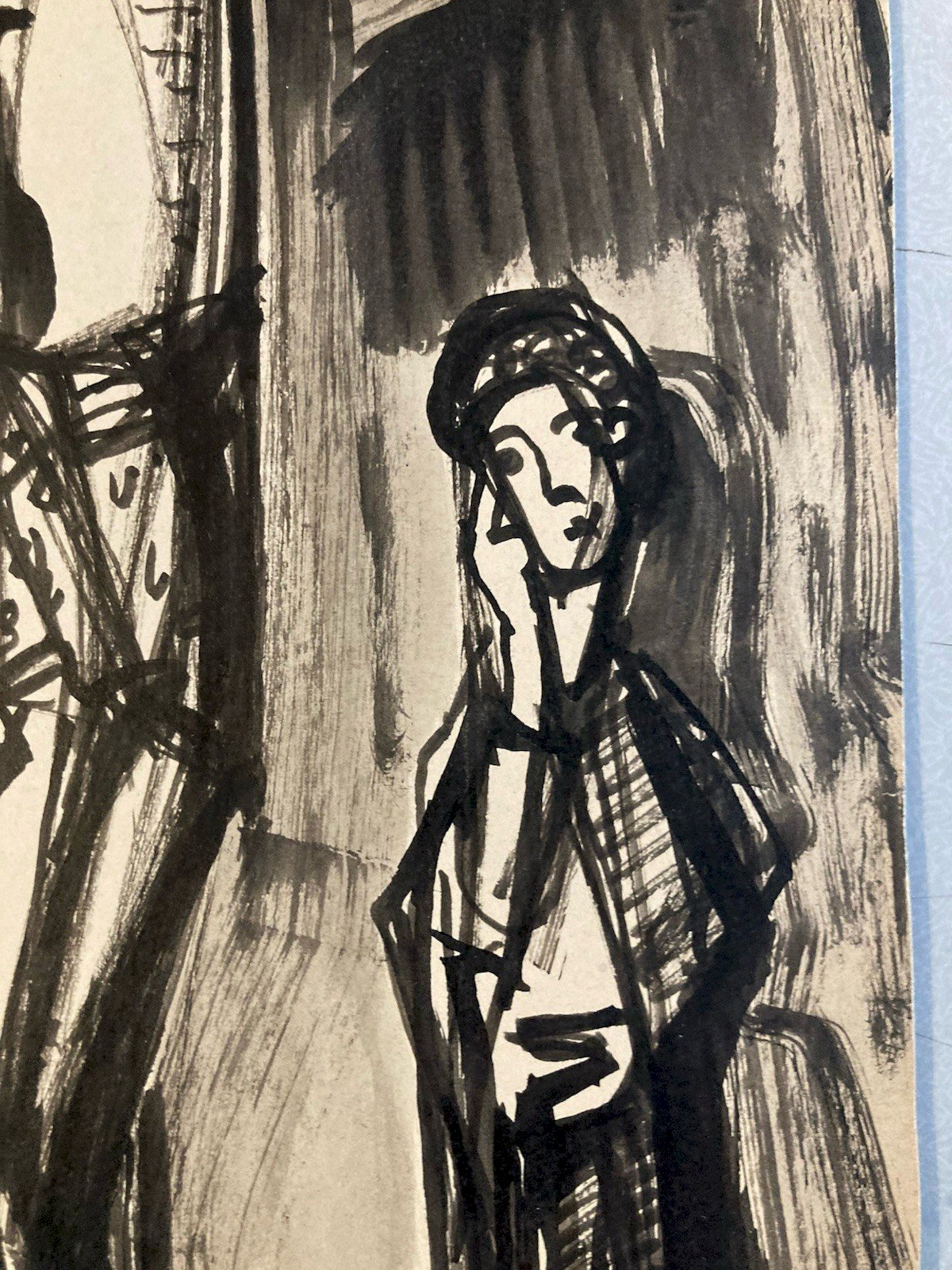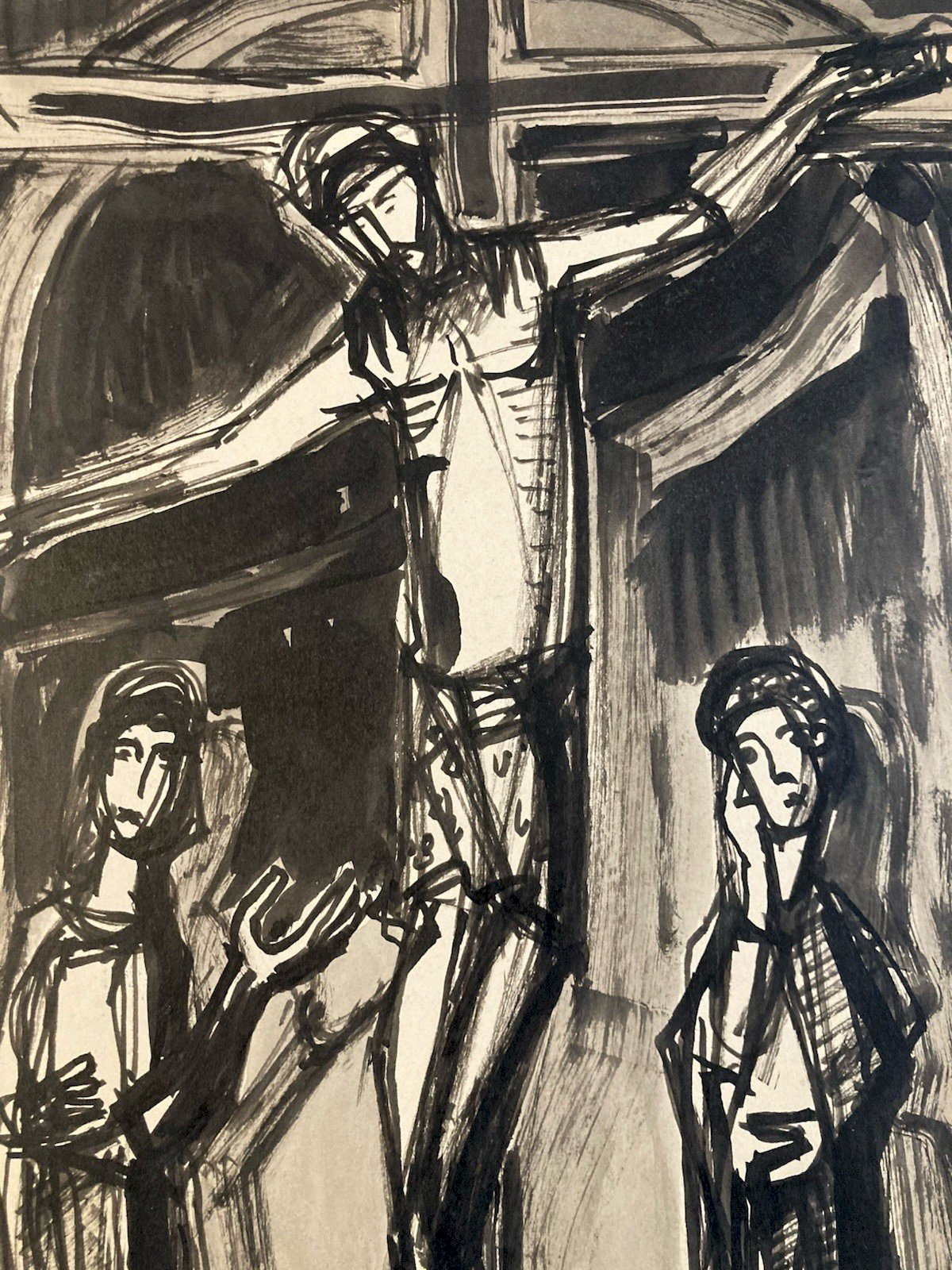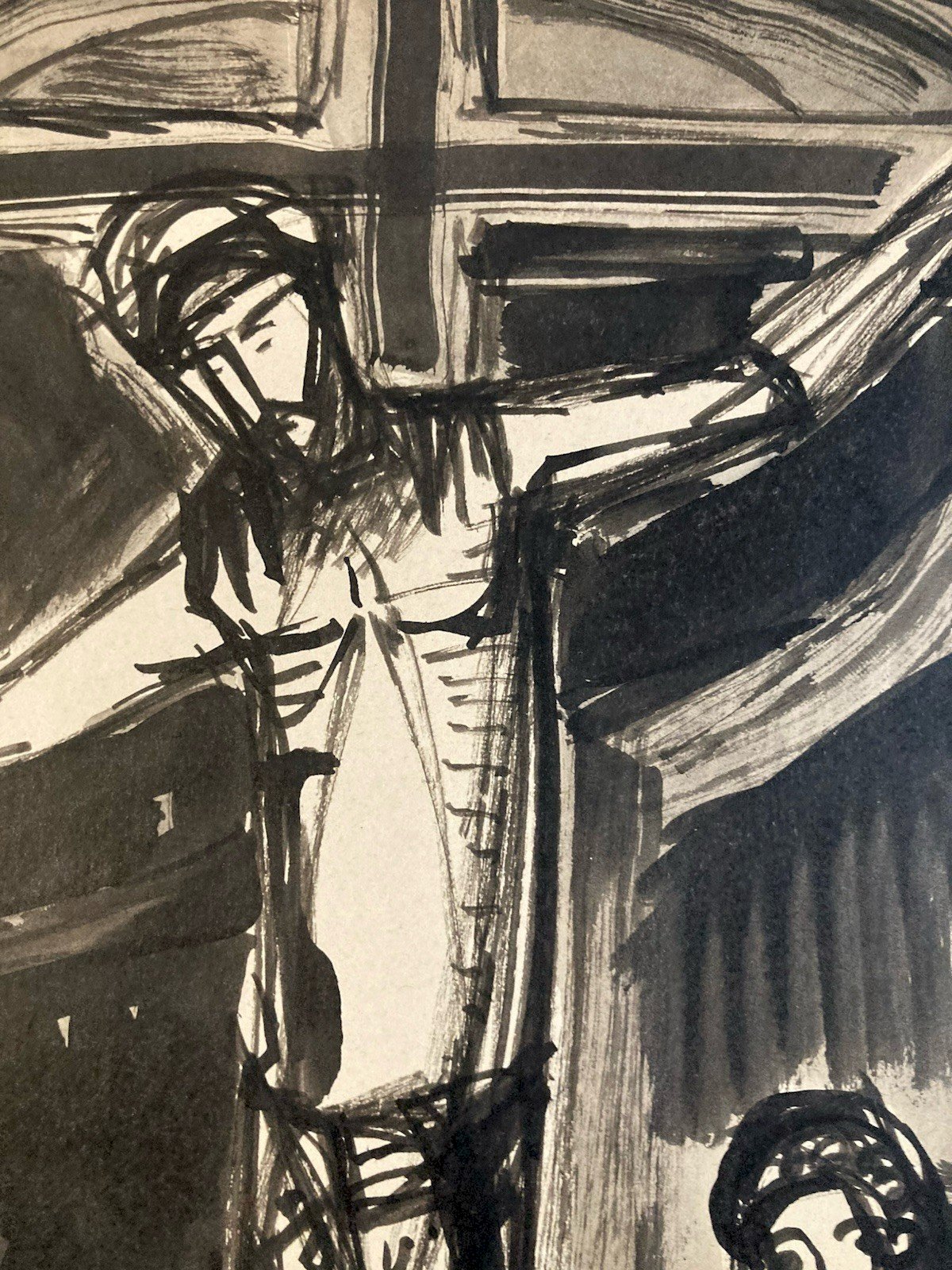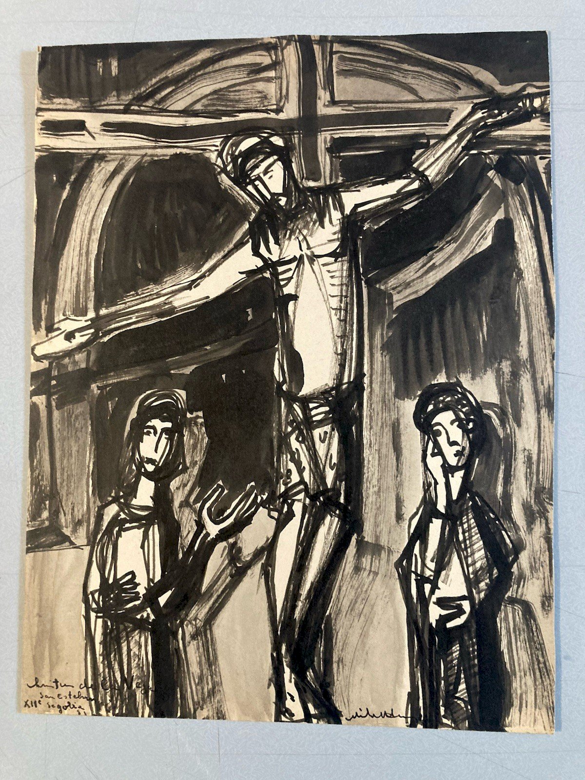 Gouache painting Michel Henry Jesus Christ Religion Old 1955 Old Art