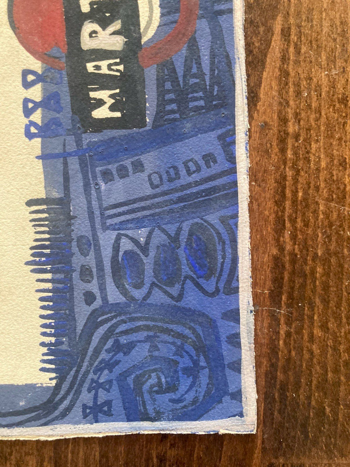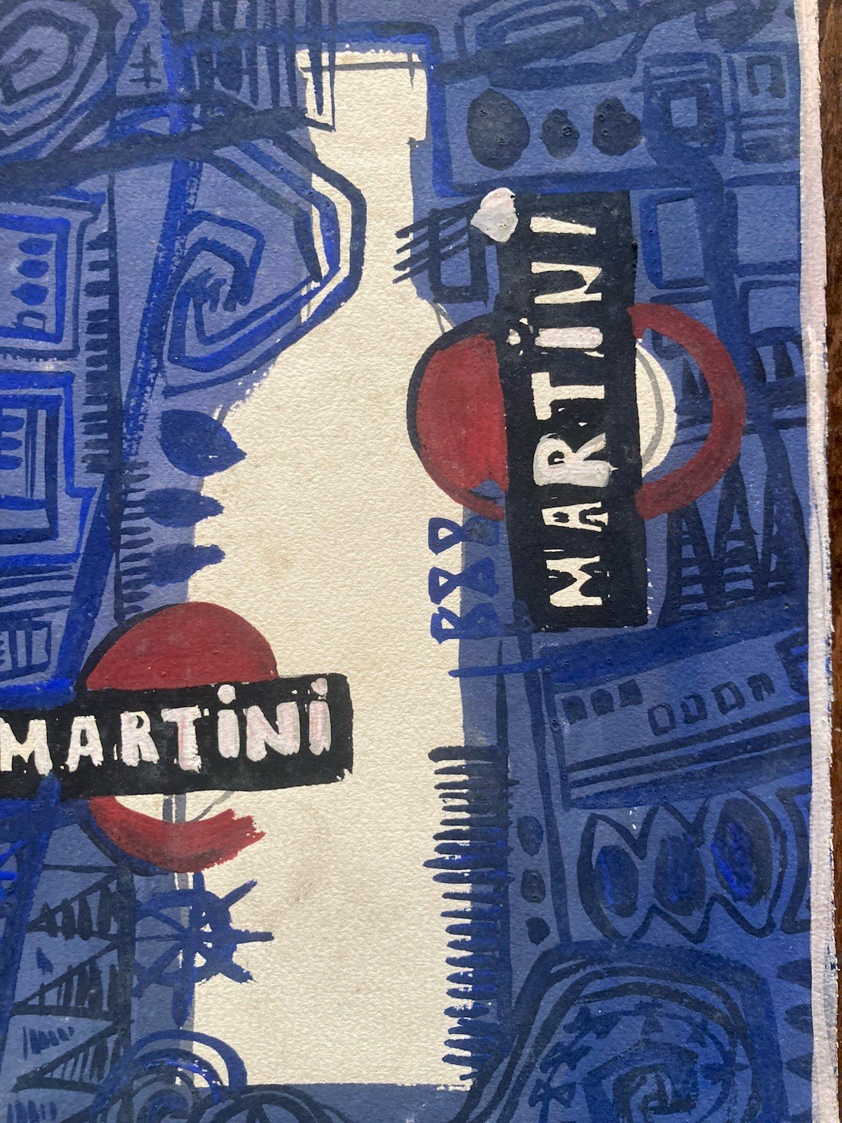Gouache painting Michel Henry Martini Alcohol Bottle 1960 Vintage Advertising