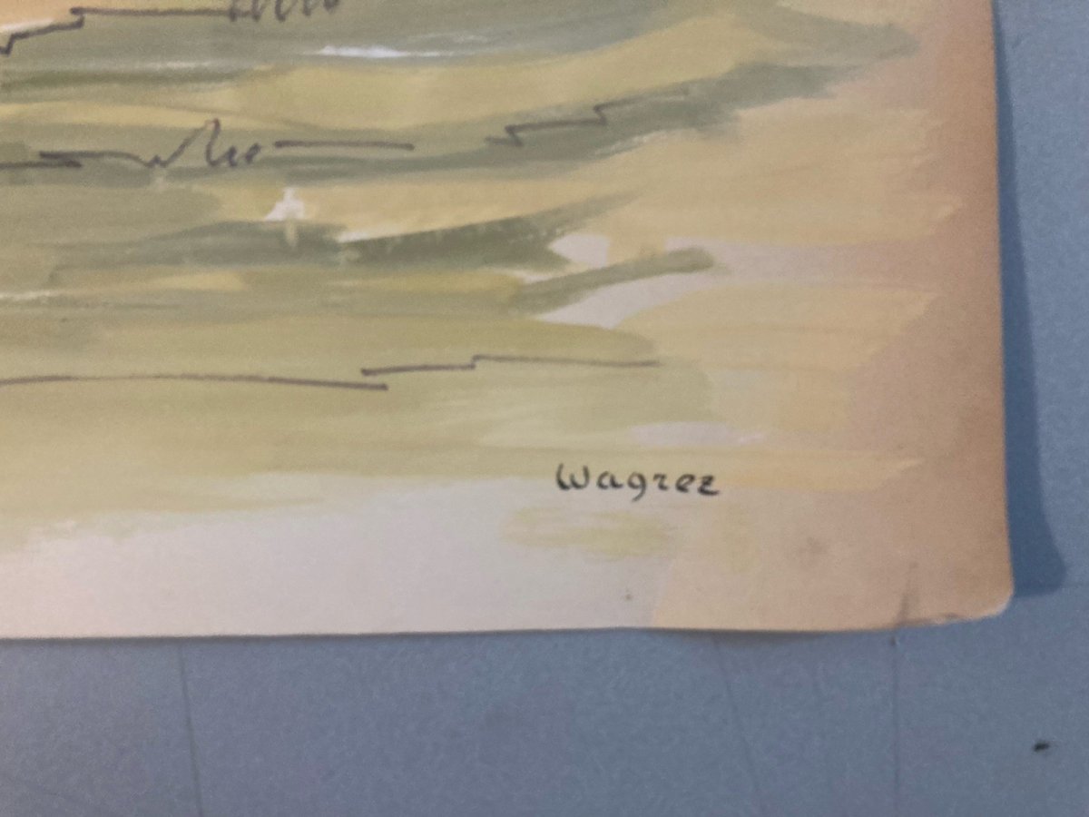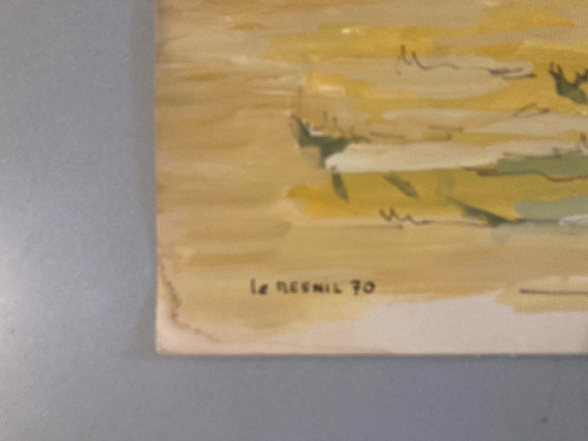 Gouache Painting Paper 1970 Impressionist Landscape Le Mesnil Ancient Art