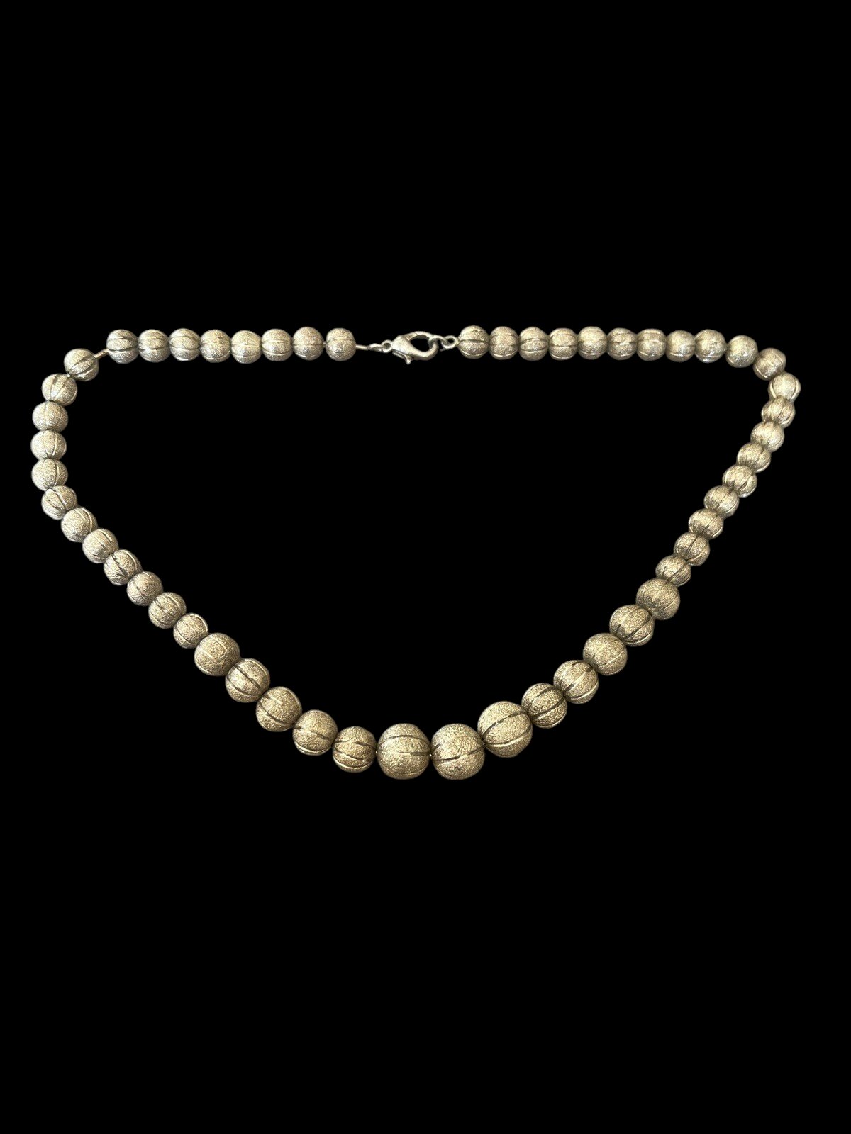 Vintage silver metal drop bead necklace. Good vintage condition. Dimensions: approximately 47 cm long. Weight: approximately 42 g. The beads can move along the chains; there is a small space that allows movement of the beads, which is original. Slight color variations may exist between the photos and the actual object depending on the lighting. It is difficult to capture exactly the same lighting in each shot. Condition: Pre-owned: Item has been worn. Possible imperfections. Dominant stone: N. Brand: Vintage. Type: Graduated. Dominant color: Silver. Material: Metal. Theme: Beads. Country of origin: France.