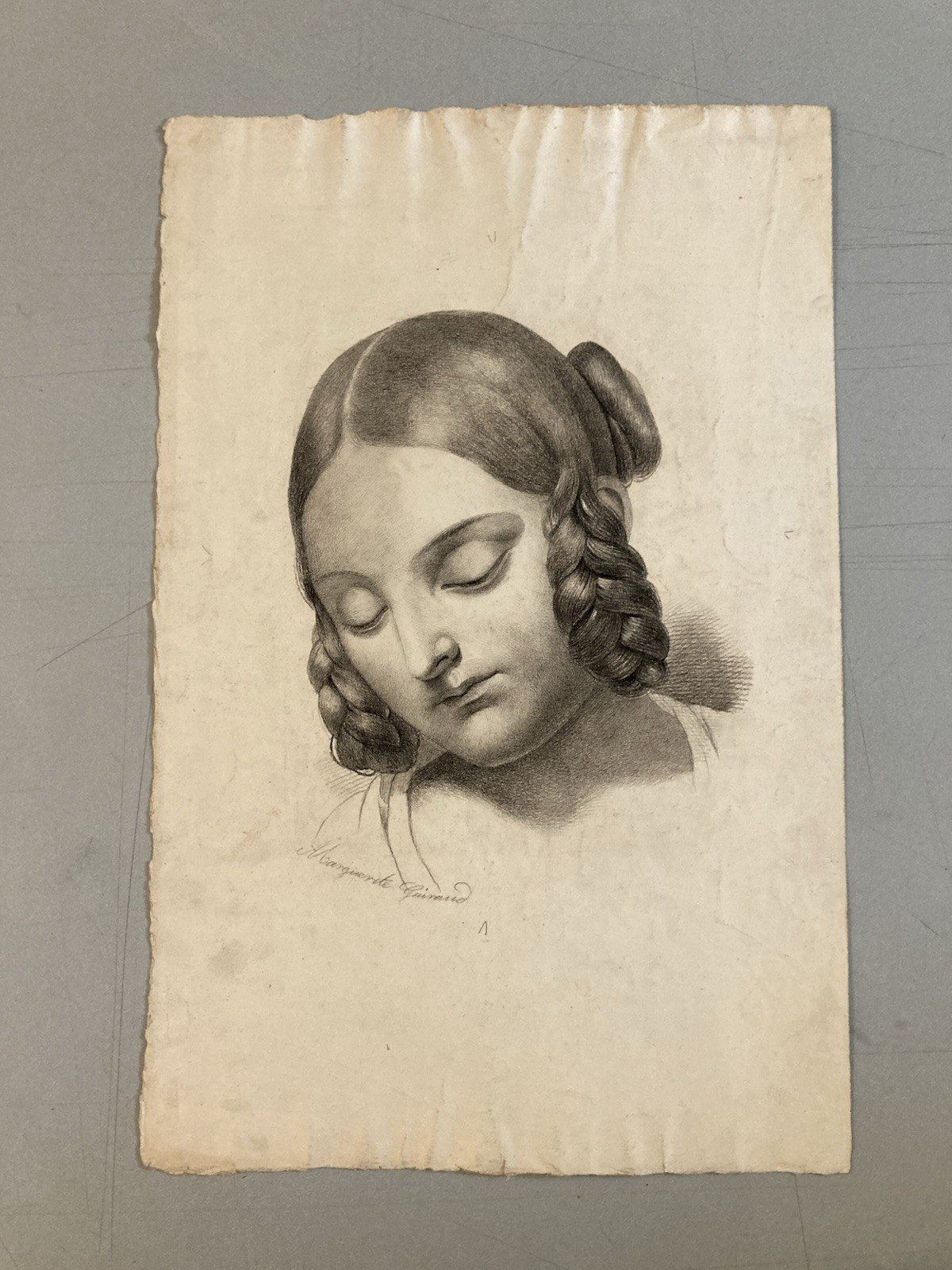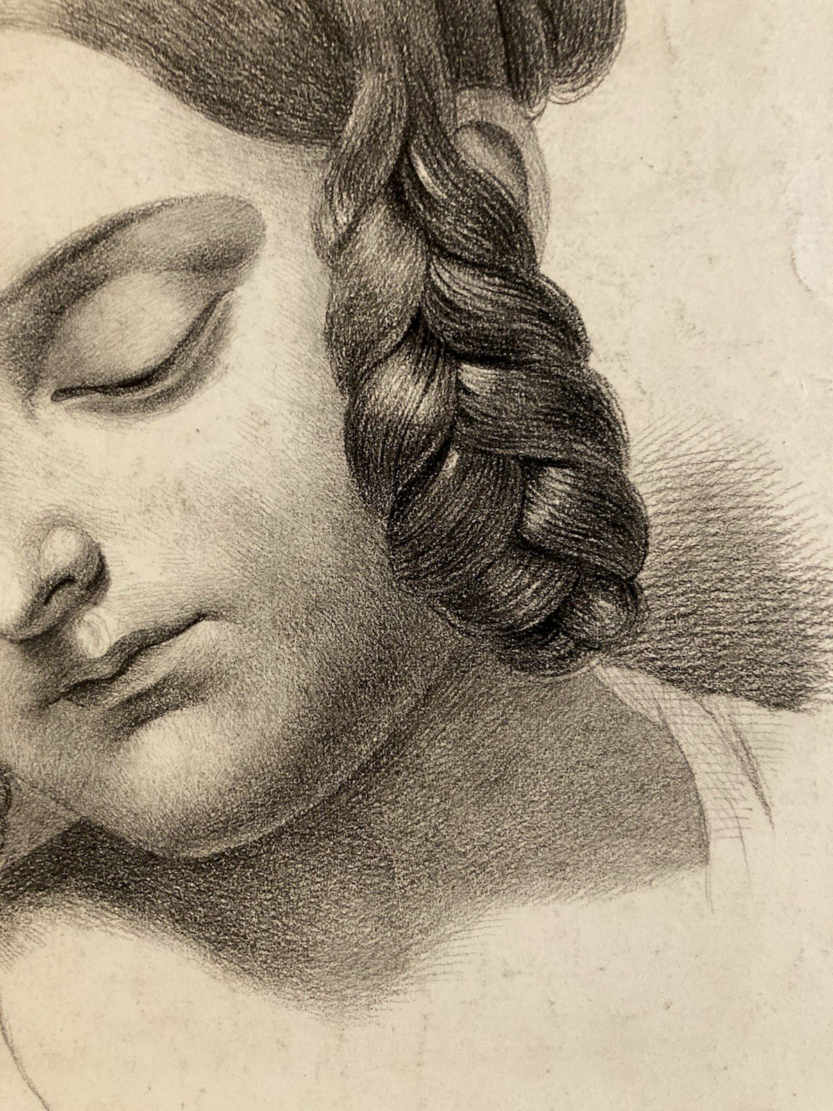Great Drawing Lead Mine 19th Century Pencil Portrait Young Woman Art Bust