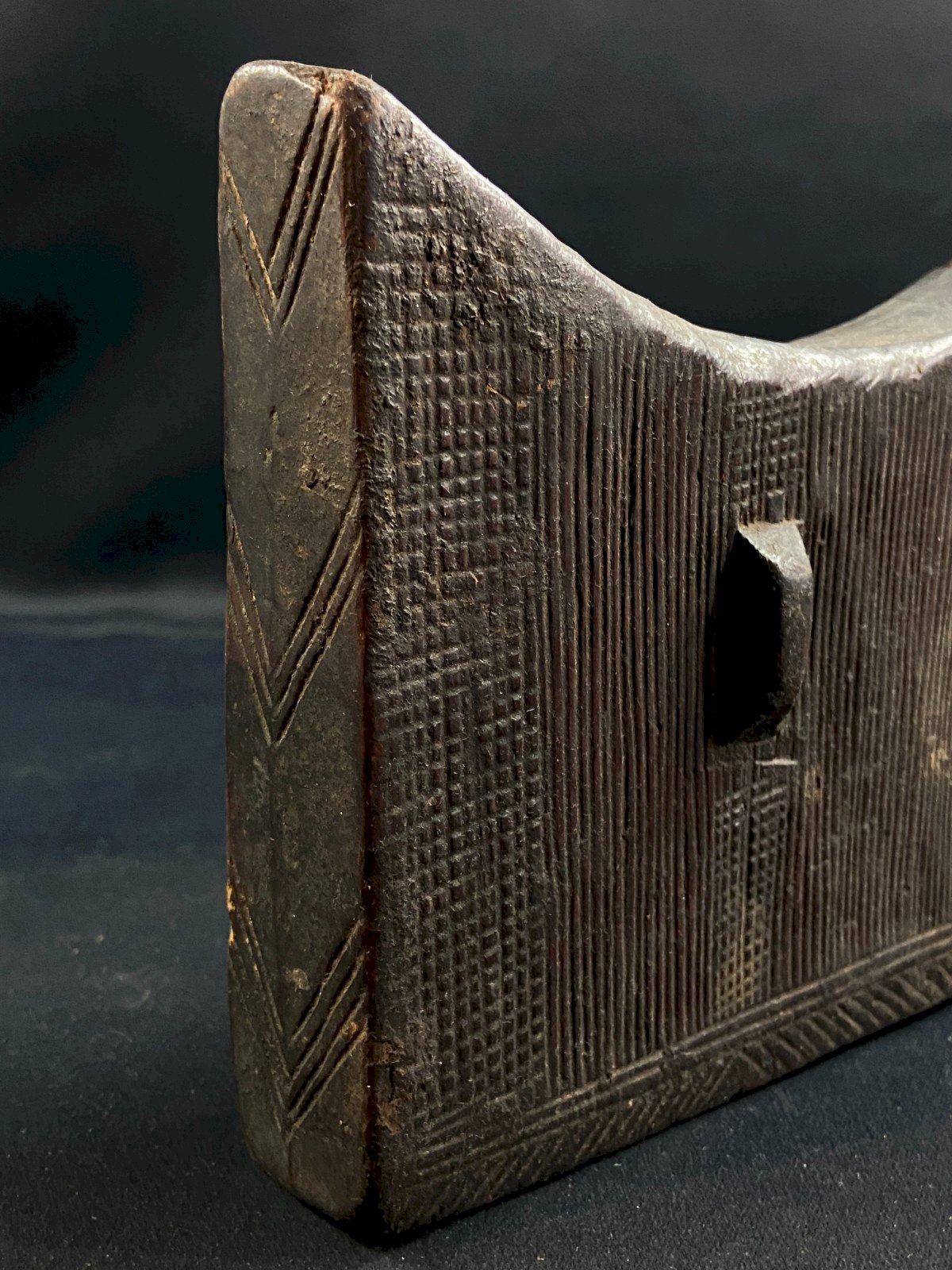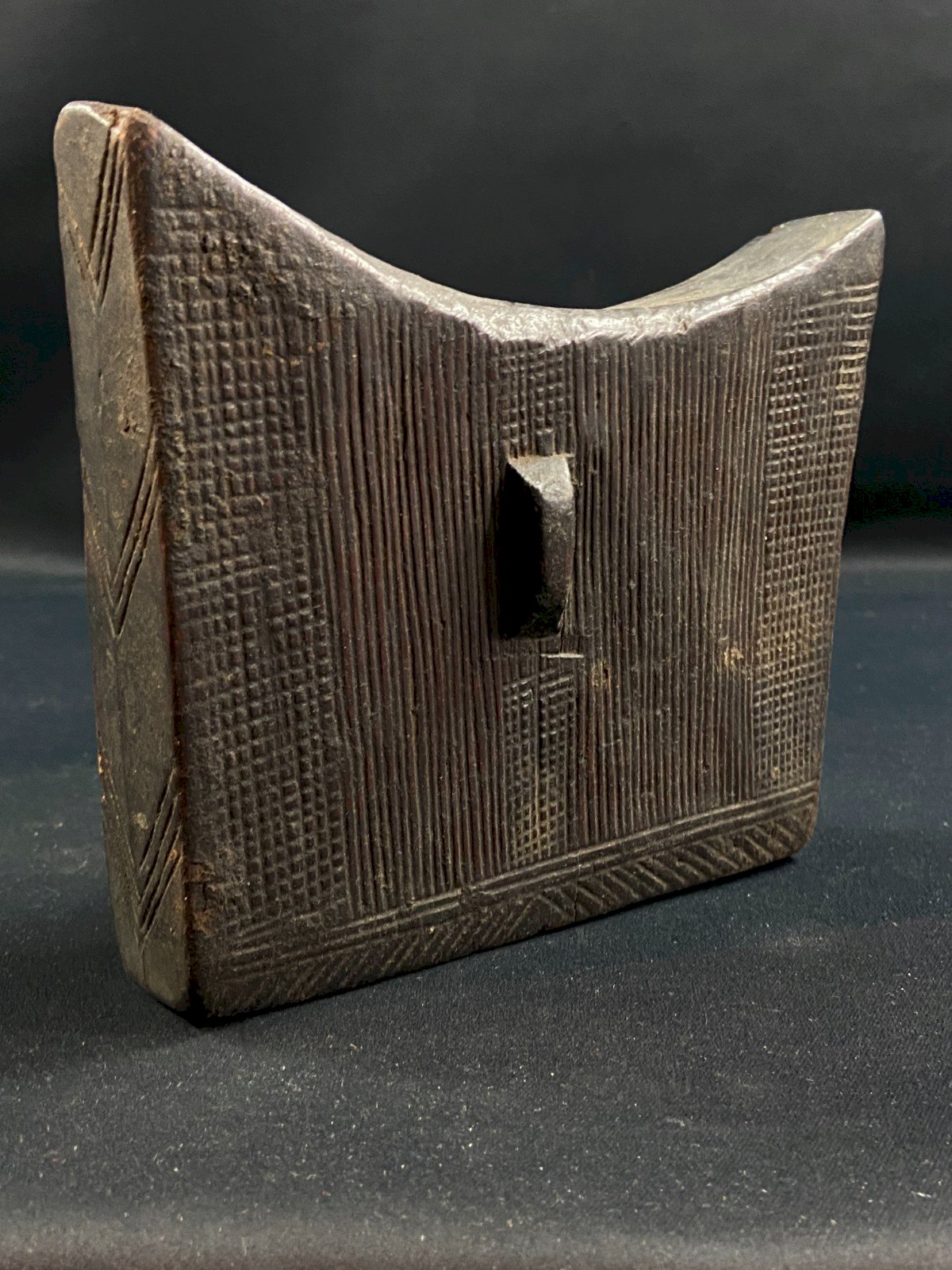 Gourague neck support, Ethiopia, Gurage Sidama Max dimensions: 20.2 x Height 17 x 5.3 cm Weight: 682 grams Presence of visible signs of use in the photos Ultra-secure shipping worldwide - Order pickup possible by appointment, 7 rue Notre-Dame 18000 Bourges. - Possibility of grouping within the same package: please contact me beforehand so that I can calculate your optimized shipping costs. Authenticity: Original Type: Furniture Origin: Africa Period: 1900-1949 Country of origin: Ethiopia Material: Wood