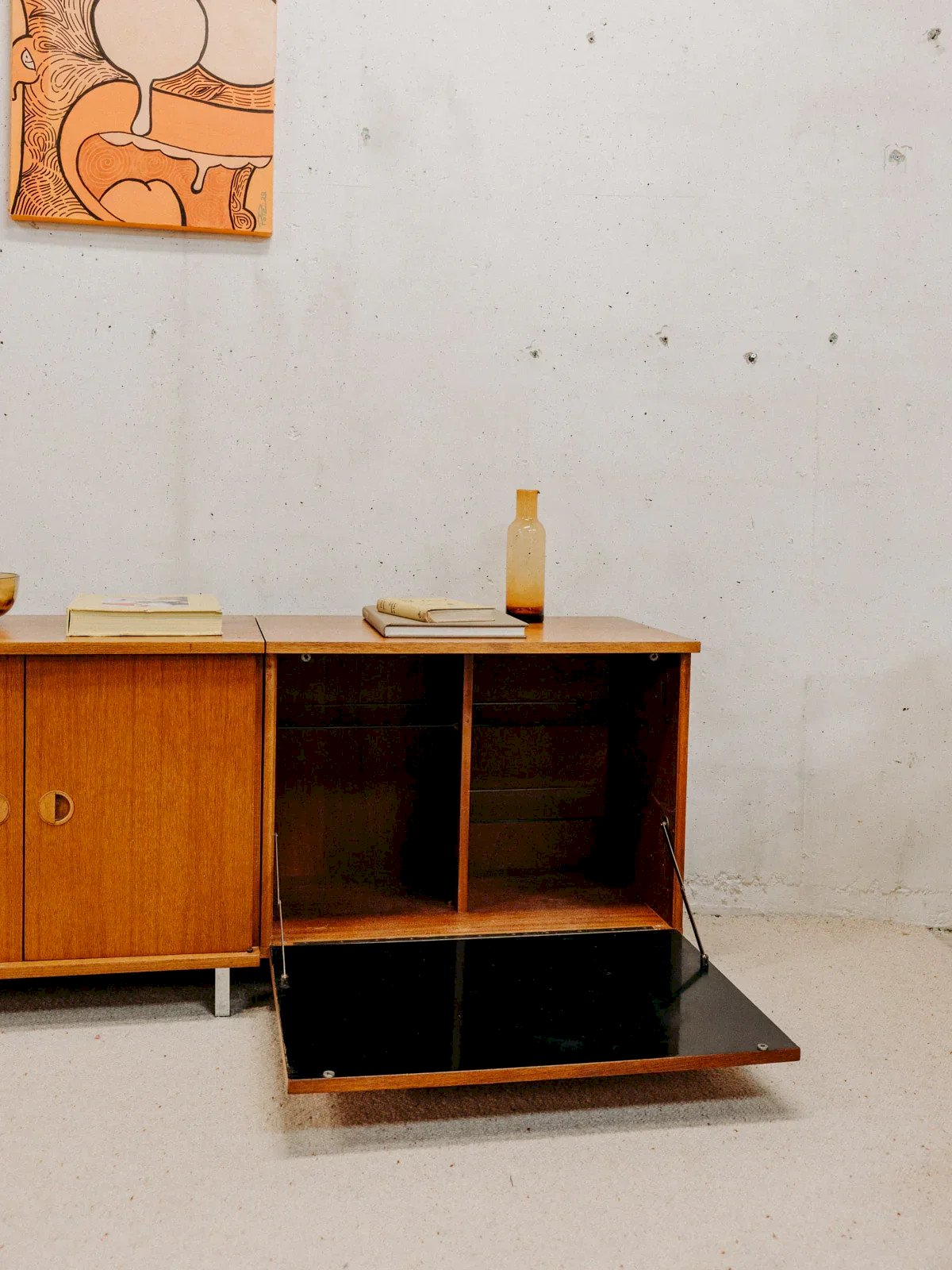 Discover our elegant small buffet with flip door, featuring a refined look inspired by vintage secretaries. Ideal for creating a sideboard with the Gustave N°432 buffet, this piece is composed of 3 glass shelves inside, offering ample storage capacity. Although a few scratches on the wood bear witness to its history, this buffet will add a touch of authenticity and charm to your interior. A unique piece not to be missed! Length: 72 cm Width: 46 cm Height: 64 cm Height of the left niche: 35 cm Height of the right niche: 16 cm Condition: Used: An item that has been used. Item showing some superficial wear marks, fully operational and functioning correctly. It may be a demonstration model or an item returned to the store after a short period of use. Potential imperfections. Brand: Debongout Type: Vintage product Material: Wood Style: Contemporary Custom: Buffets