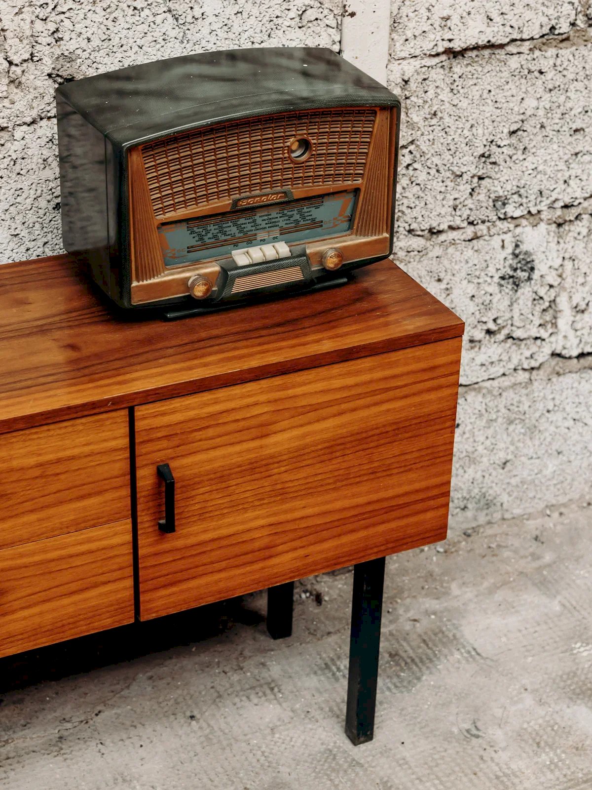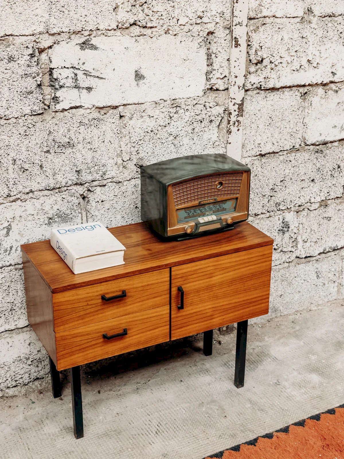 Discover this small walnut buffet with an elegant and compact design. It rests on high black wooden legs that give it a light and contemporary look. It consists of two practical drawers and a cabinet that offers plenty of storage space. Ideal for an entryway, living room, or bedroom. A functional piece of furniture with refined and timeless style. Length: 68 cm Height: 53 cm Drawer height: 8 cm Cabinet height: 22.5 cm Depth: 29 cm Condition: Used: Item has been used. Item shows some superficial wear marks,...Used: Item has been used. Item shows some superficial wear marks, fully operational and functioning correctly. It may be a demonstration model or an item returned to the store after a short period of use. any potential imperfections. Brand: Debongout Type: Curated product Material: Wood, Walnut Style: Contemporary Custom: Buffets