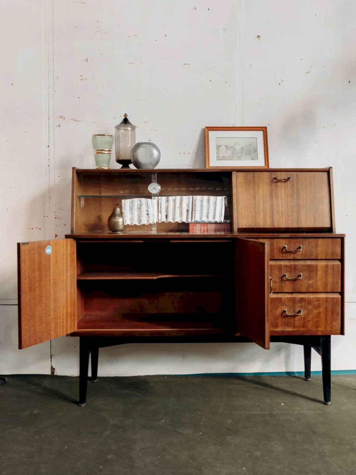 Discover this large wooden buffet from Nathan, a piece of furniture with a sleek design that combines functionality and elegance. Featuring glass cabinets, spacious drawers, and a drop-down section, it offers optimal storage space while showcasing your decorative items. Its high shelf adds a practical touch, while its metal legs bring a contemporary note to your interior. Ideal for a living room or dining area, this buffet will enhance your decor with style. Length: 122 cm Width: 44 cm Height: 127 cm Height of the drop-down section: 29 cm Height of the glass cabinets: 11 / 18 cm Height of the drawers: 5 / 12 / 18 cm Height of the cabinets: 16 / 21 cm Condition: Used: Item has been used. Item shows some signs of superficial wear, fully operational and functioning correctly. It may be a display model or an item returned to the store after a short period of use. Any potential imperfections. Brand: Debongout Type: Thrifted product Material: Wood, Metal Style: Contemporary Custom: Buffets