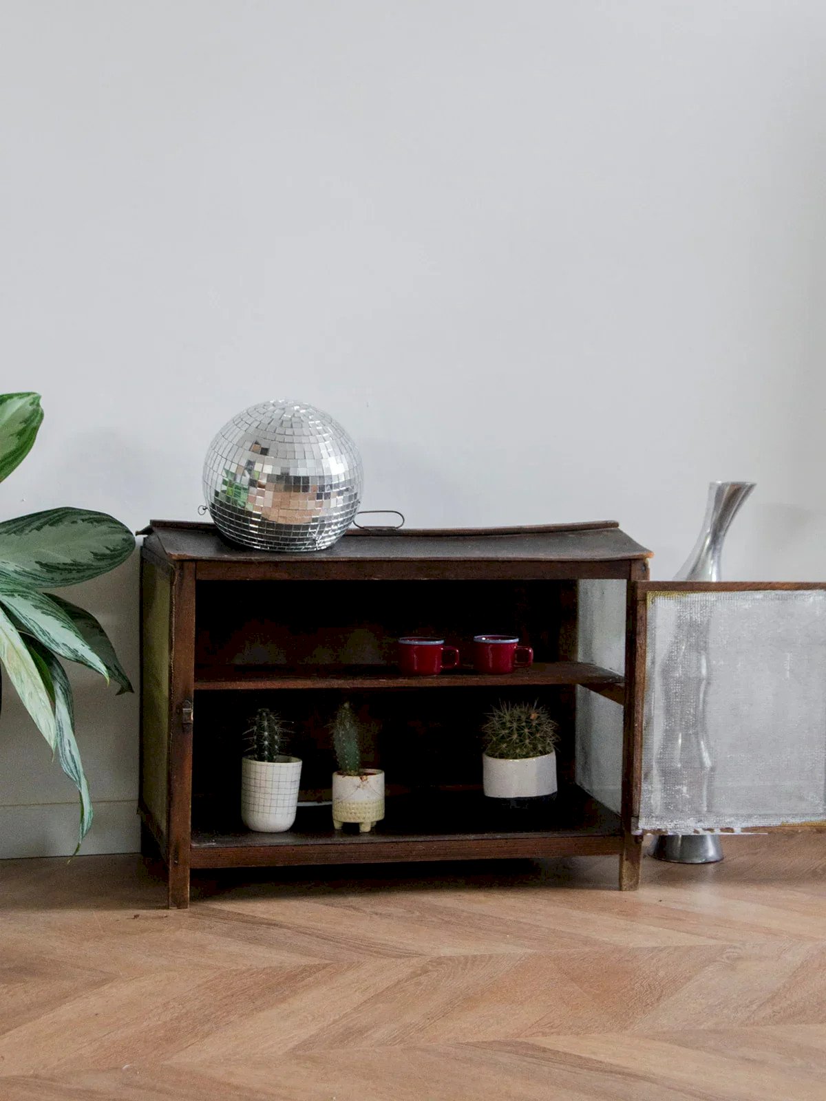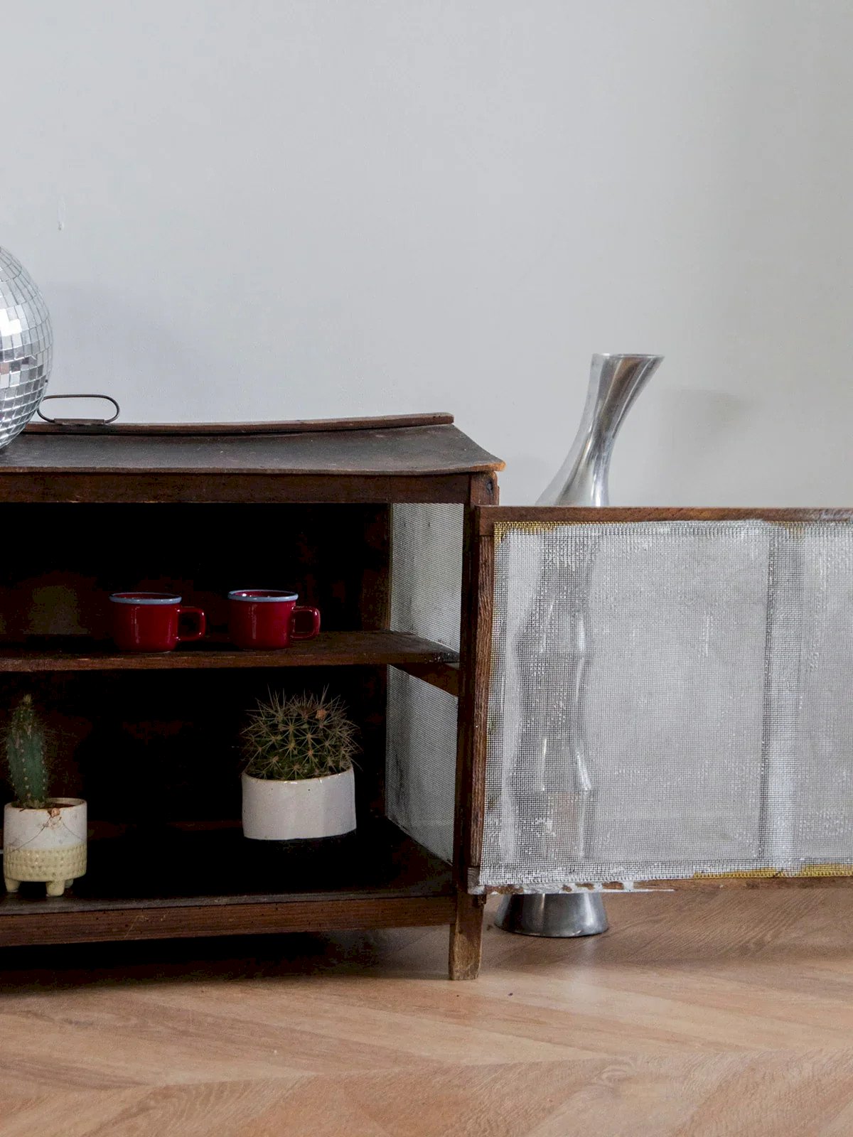 Discover our wooden pantry, a unique piece full of charm, marked by time. Although it shows some signs of life and a fine metal grid that is slightly pitted, this item has been carefully treated to combine vintage aesthetics with functionality. Featuring metal details, along with a handle and latch, it will add a rustic and authentic touch to your interior while providing practical storage space. A must-have for lovers of refined and quirky decor. Length: 62 cm Height: 45.5 cm Depth: 31 cm A little history of the pantry The pantry, once an essential element in every household, was much more than just a storage piece. Before the advent of refrigerators, it served to keep food safe from heat and pests. Made of wood with fine grids or lattice panels, it allowed air to circulate while protecting provisions. Today, the pantry is making a strong comeback, embodying the charm of yesteryear while adding a rustic and functional touch to our modern kitchens. It's the perfect opportunity to rediscover this essential element of the past and give it a place in your home. Condition: Used: Item that has been used. Item showing some superficial wear marks, fully operational and functioning correctly. It may be a demonstration model or an item returned to the store after a short period of use, with possible imperfections. Brand: Debongout Type: Vintage product Material: Wood, Metal Custom: Pantry Style: Country