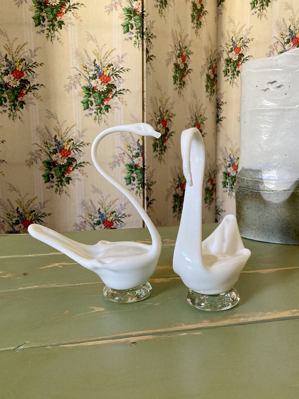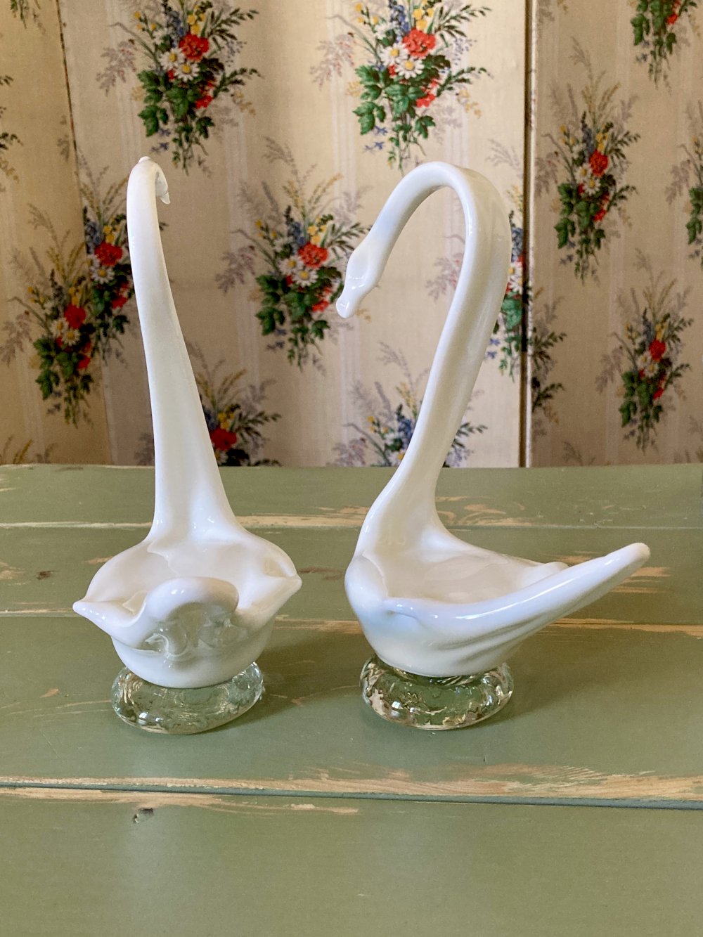 Handcrafted opaque glass decorative swan duo