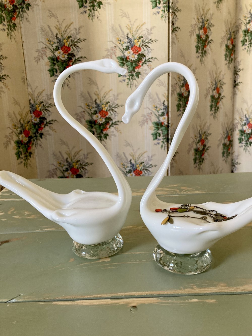 The fluidity of the line and the charm of the style define this elegant duo of decorative swans.