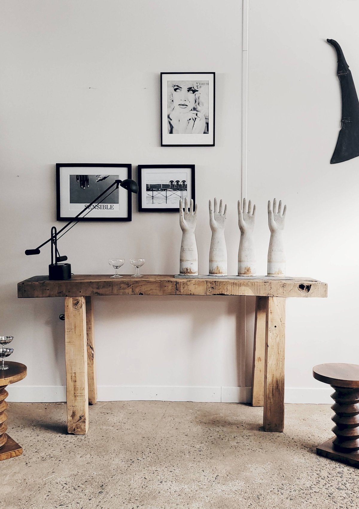 The raw aspect of the wood and its straight lines give it a brutalist style.