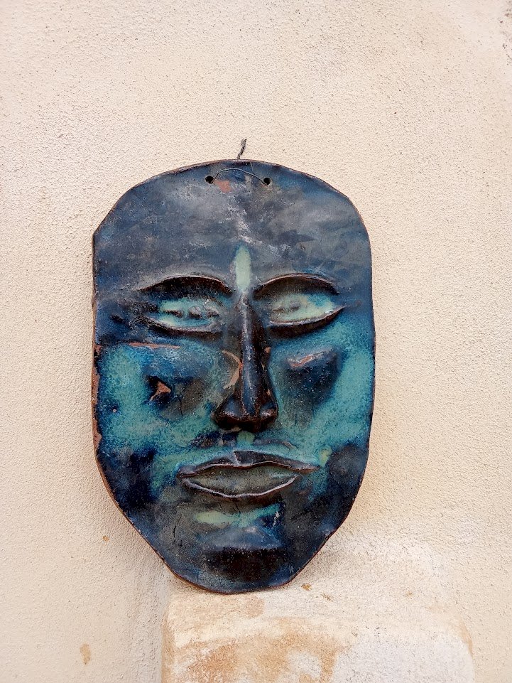 handmade terracotta mask "head of Bacchus".