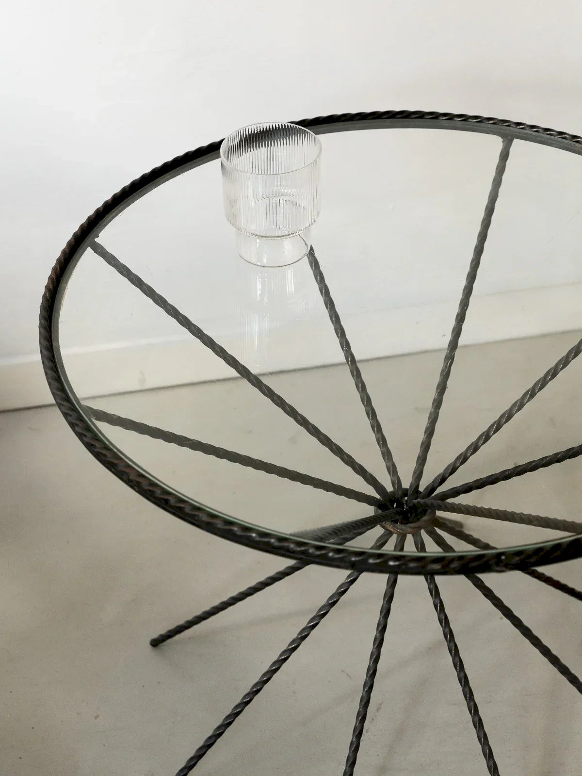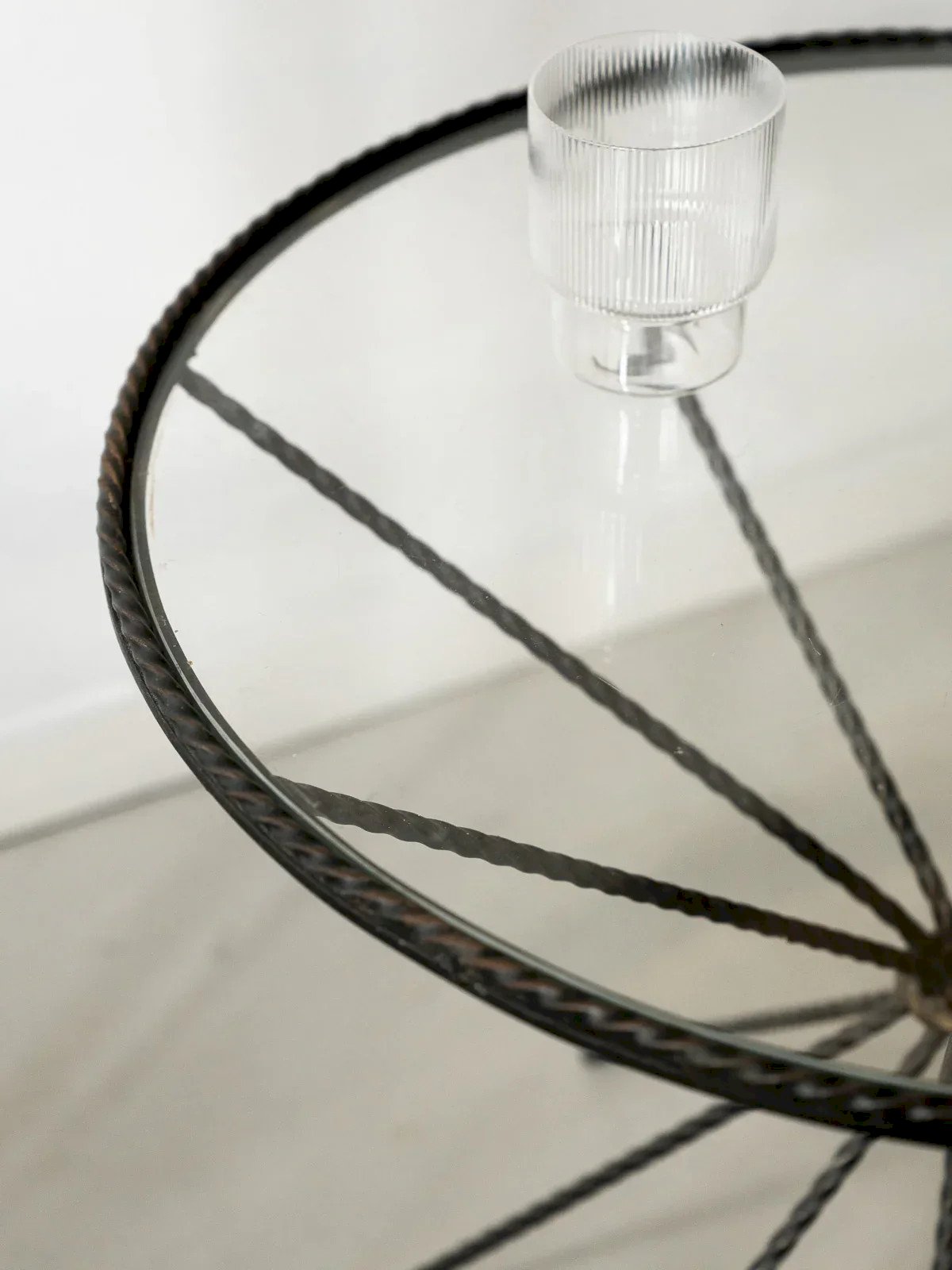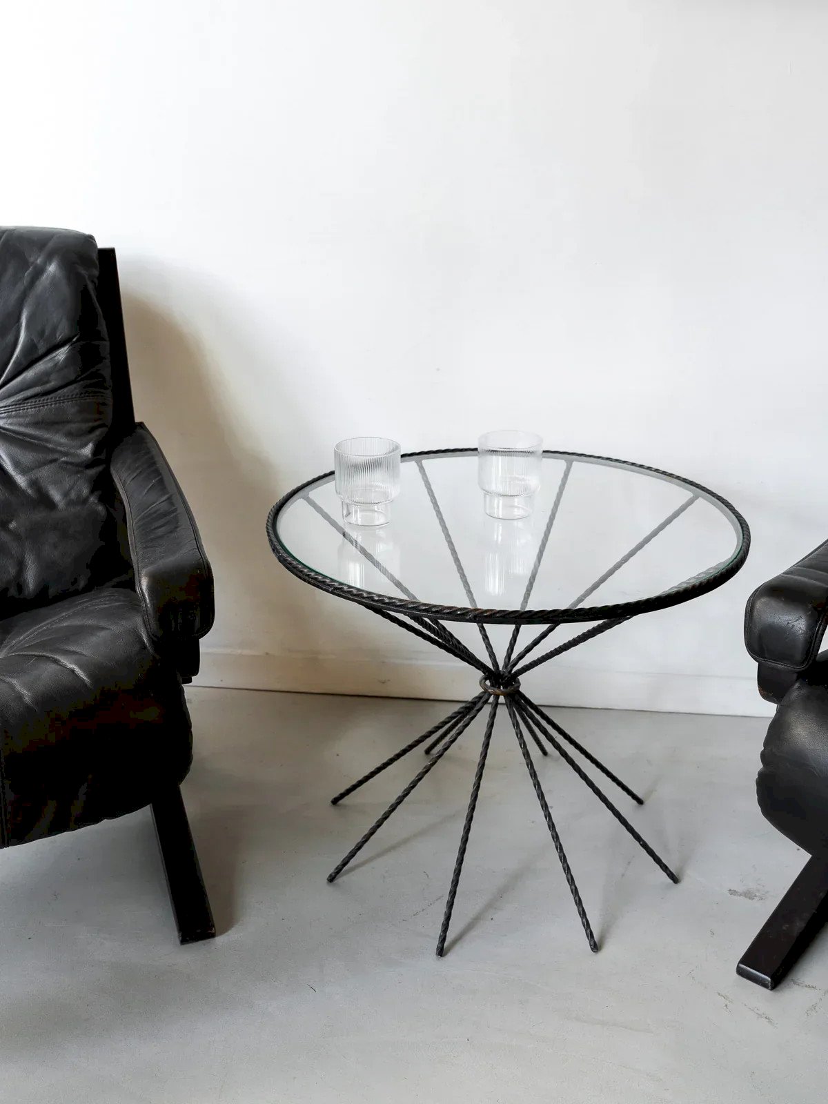Discover our round table with a contemporary design, blending elegance and robustness. Its metal structure, paired with a glass top, creates a unique piece that will add a modern touch to your interior. Ideal for your moments of relaxation, this table combines aesthetics and functionality. A perfect choice to enhance your living space. Web exclusive, the meeting will take place at your home! Height: 50 cm Diameter: 62 cm Condition: Used: Item has been used. Item shows some superficial signs of wear... Used: Item has been used. Item shows some superficial signs of wear, fully operational and functioning correctly. It may be a display model or an item returned to the store after a short period of use. any potential imperfections. Brand: Debongout Type: Curated product Material: Glass, Metal Style: Contemporary Custom: Side tables