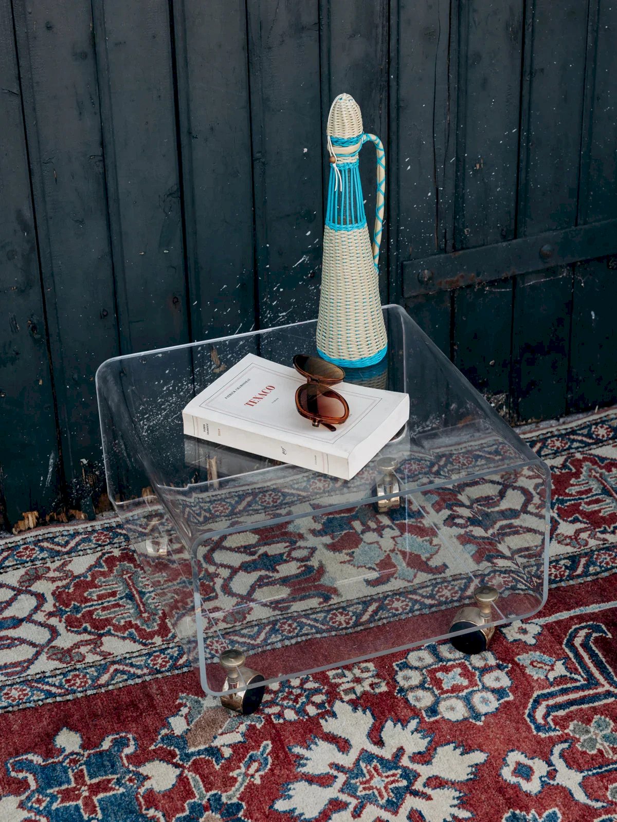Discover this small accent coffee table made of plexiglass, elegant and modern with its golden and black wheels. Practical and easy to move, it fits into any space. Some signs of wear add a touch of authenticity without compromising its style. Ideal for completing a living room or a reading nook. Bring a contemporary and functional note to your interior. Length: 40 cm Height: 28 cm Depth: 40 cm Condition: Used: An item that has been used. The item shows some superficial signs of wear...Used: An item that has been used. The item shows some superficial signs of wear, fully operational and functioning correctly. It may be a demonstration model or an item returned to the store after a short period of use. any potential imperfections. Brand: Debongout Type: Vintage product Material: Plexiglass Custom: Accent tables Style: Contemporary