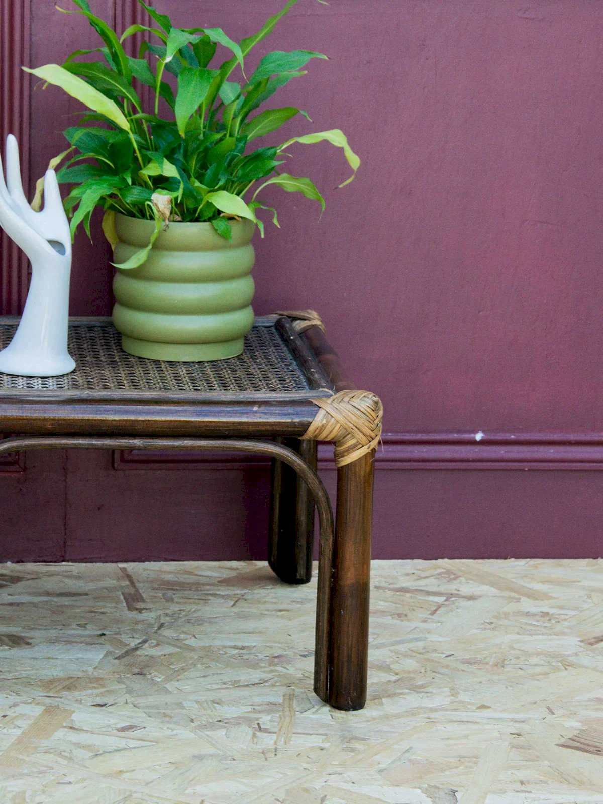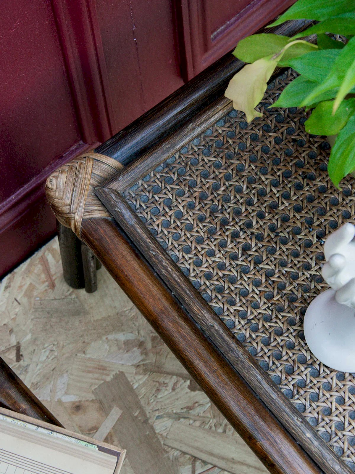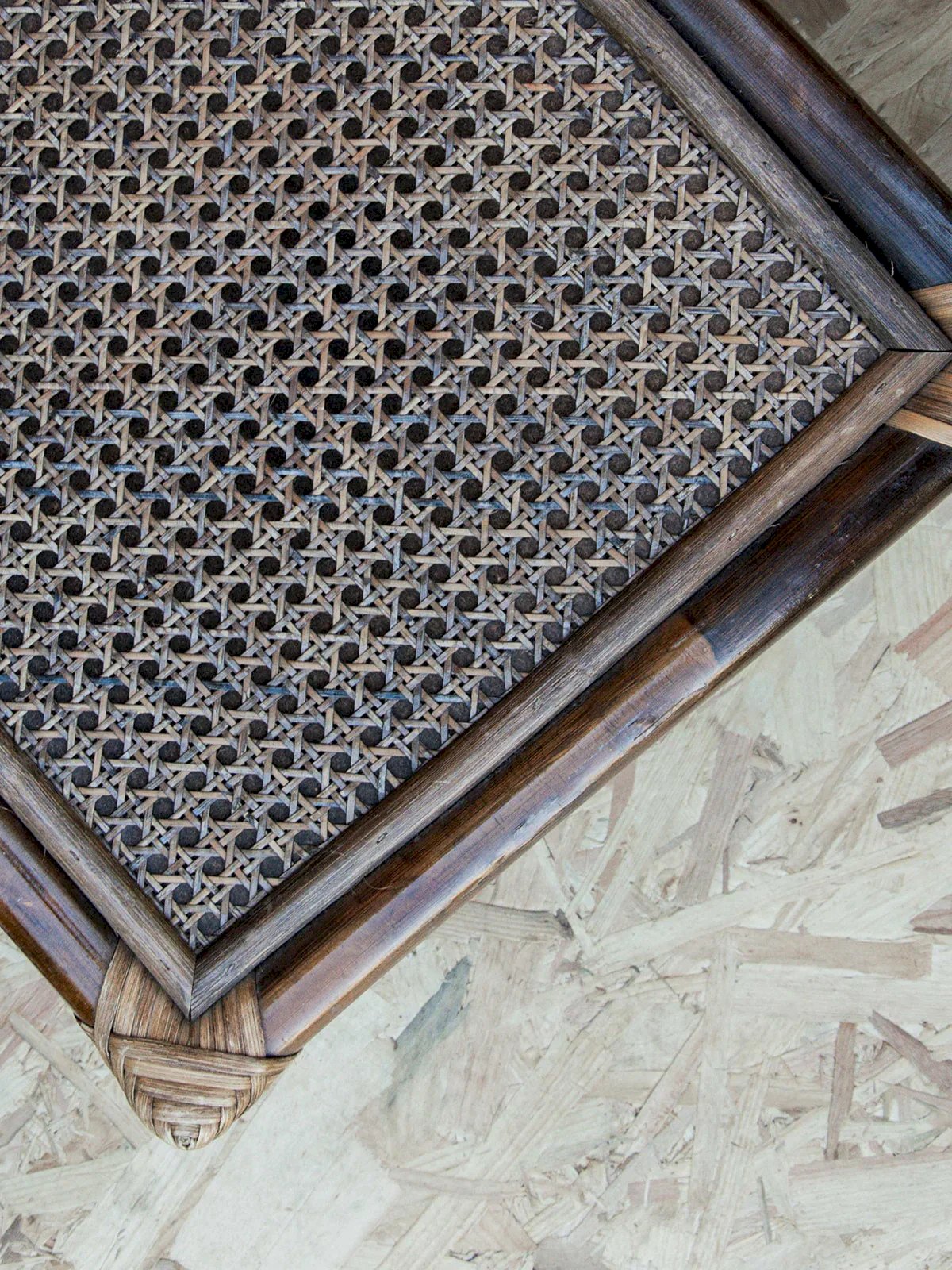 Bring a touch of elegance to your interior with this pair of coffee tables featuring a refined design. The dark rattan structure harmoniously combines with the cane top, offering a clever mix of modernity and tradition. Perfect as bedside tables or side tables, they easily fit into any space, adding charm and functionality to your decor. Length: 40 cm Width: 39.5 cm Height: 26 cm Height under the top: 22 cm Condition: Used: Item has been used. Item shows some signs of superficial wear, fully operational and functioning correctly. It may be a demonstration model or an item returned to the store after a short period of use. Possible imperfections. Brand: Debongout Type: Vintage product Material: Rattan, Cane Style: Contemporary Custom: Side tables.