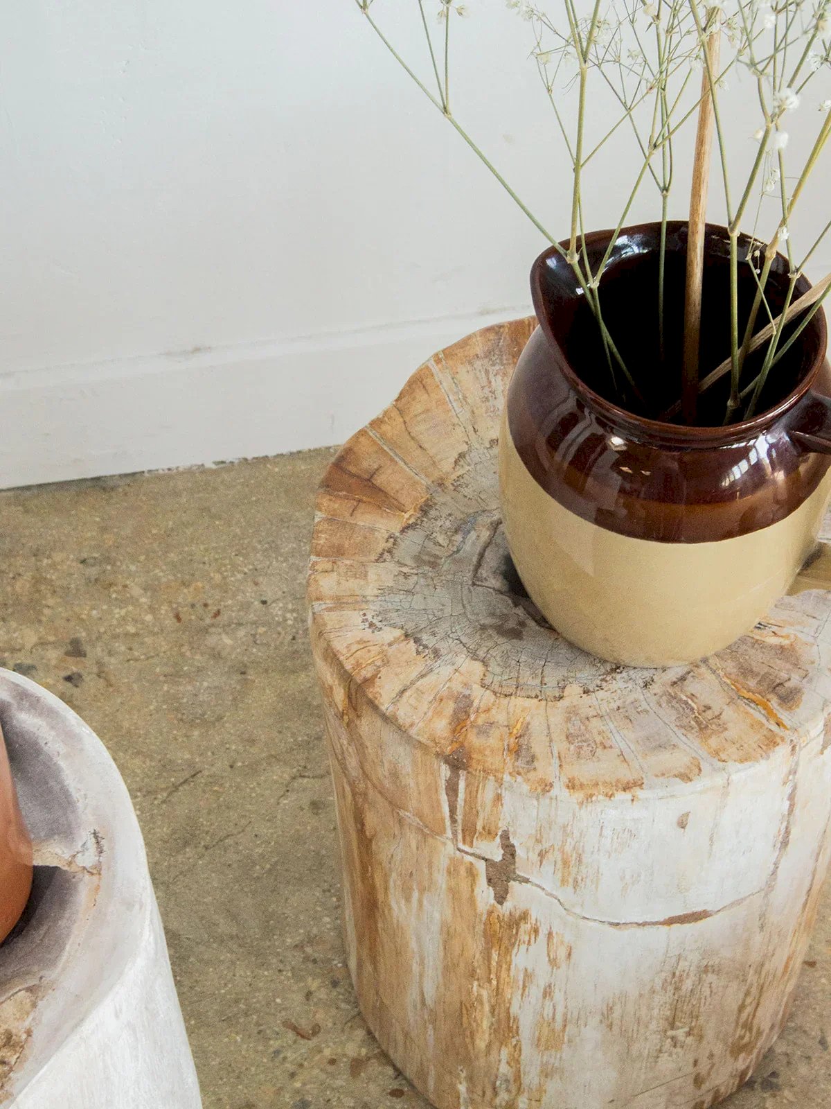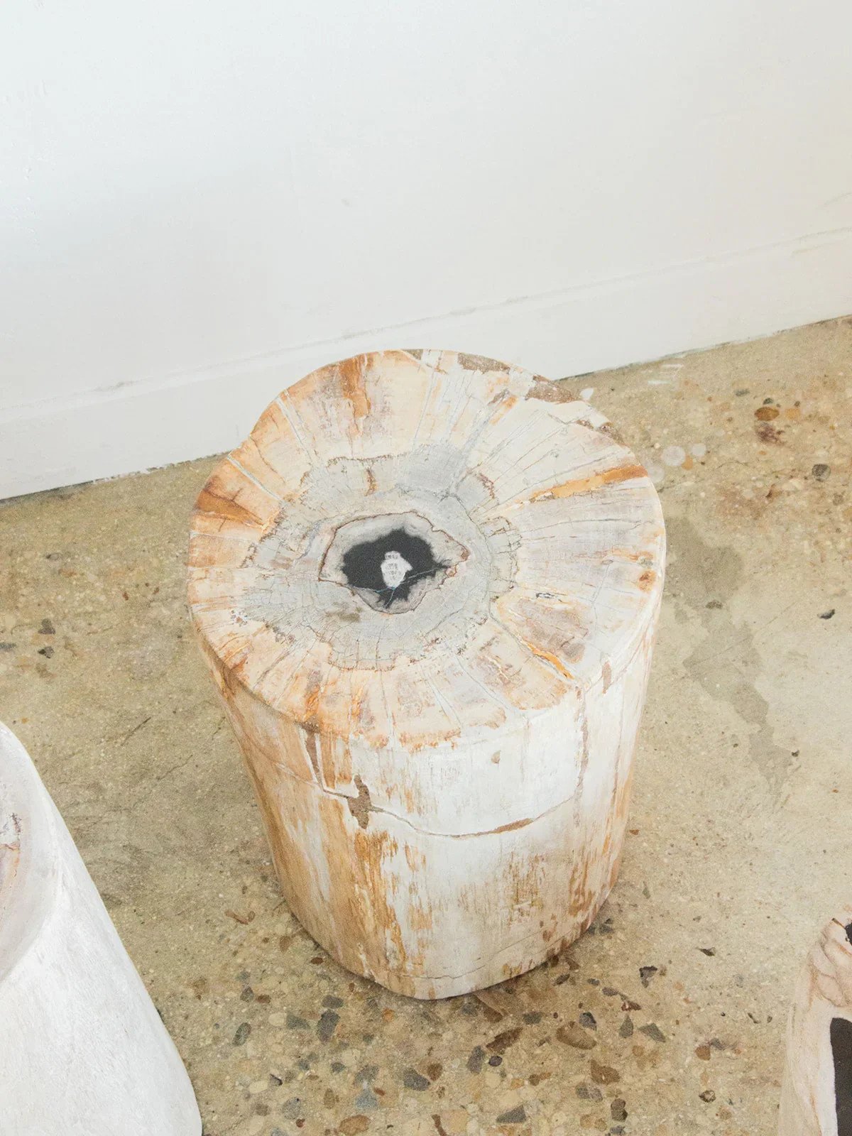 Discover this cylindrical accent table made of petrified wood, a true unique piece. Its gray heart subtly contrasts with the natural hues of the fossilized wood. Compact and elegant, it will easily find its place in a contemporary or mineral interior. Its rare and dense material gives it remarkable stability. A little raw jewel with mineral charm. Highlights the beauty of nature frozen in time. Length: 23 cm Width: 23 cm Height: 35 cm Weight: 28 kg Condition: Used: Item that has been used. Item showing some superficial signs of wear, fully operational and functioning correctly. It may be a demonstration model or an item returned to the store after a short period of use. Any imperfections. Brand: Debongout Type: Vintage product Material: Wood Style: Contemporary Customizable: Accent tables.