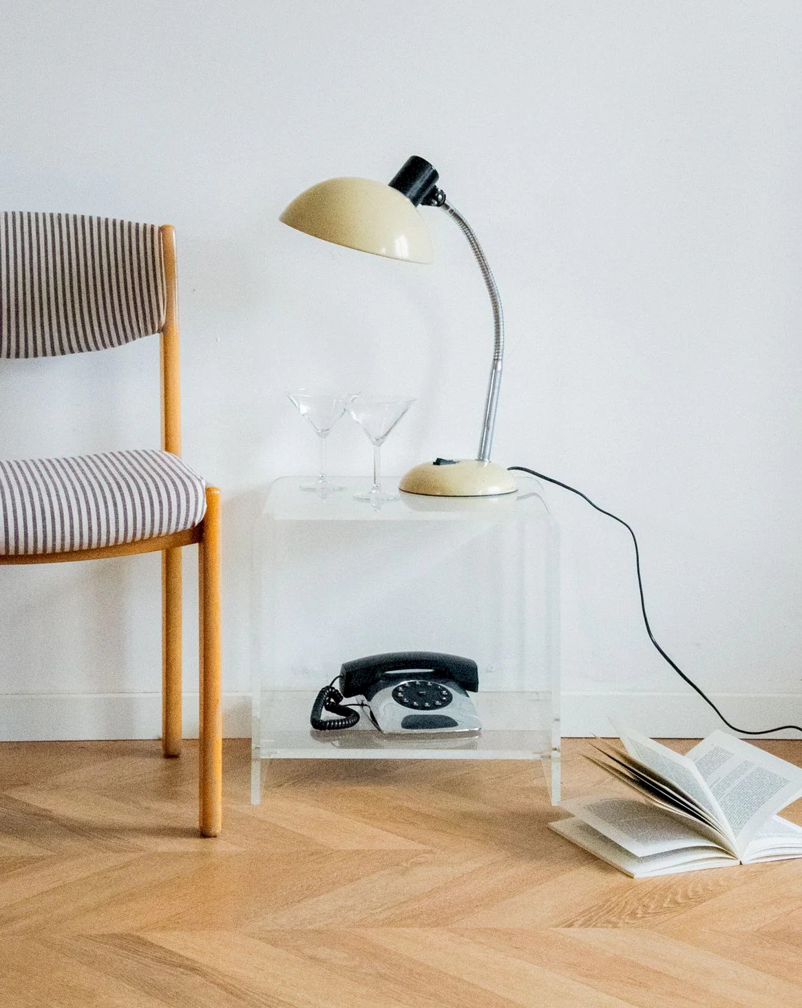 Add to your interior this transparent plexiglass side table with rounded edges, which emphasizes simplicity and elegance. Its small lower shelf offers discreet storage for books or everyday items while maintaining an airy impression thanks to the translucency of the material. The compact proportions make it perfectly suited for a living room, bedroom, or reading nook, where it will bring a contemporary and bright touch. The smooth plexiglass reflects light for a clean ambiance. Slight wear. Length: 42 cm Width: 35 cm Height: 40 cm Height of the niche: 31 cm Condition: Used: Item has been used. Item shows some superficial signs of wear, fully operational and functioning correctly. It may be a display model or an item returned to the store after a short period of use. Any imperfections. Brand: Debongout Type: Thrifted product Material: Plexiglass Customized: Side tables Style: Contemporary