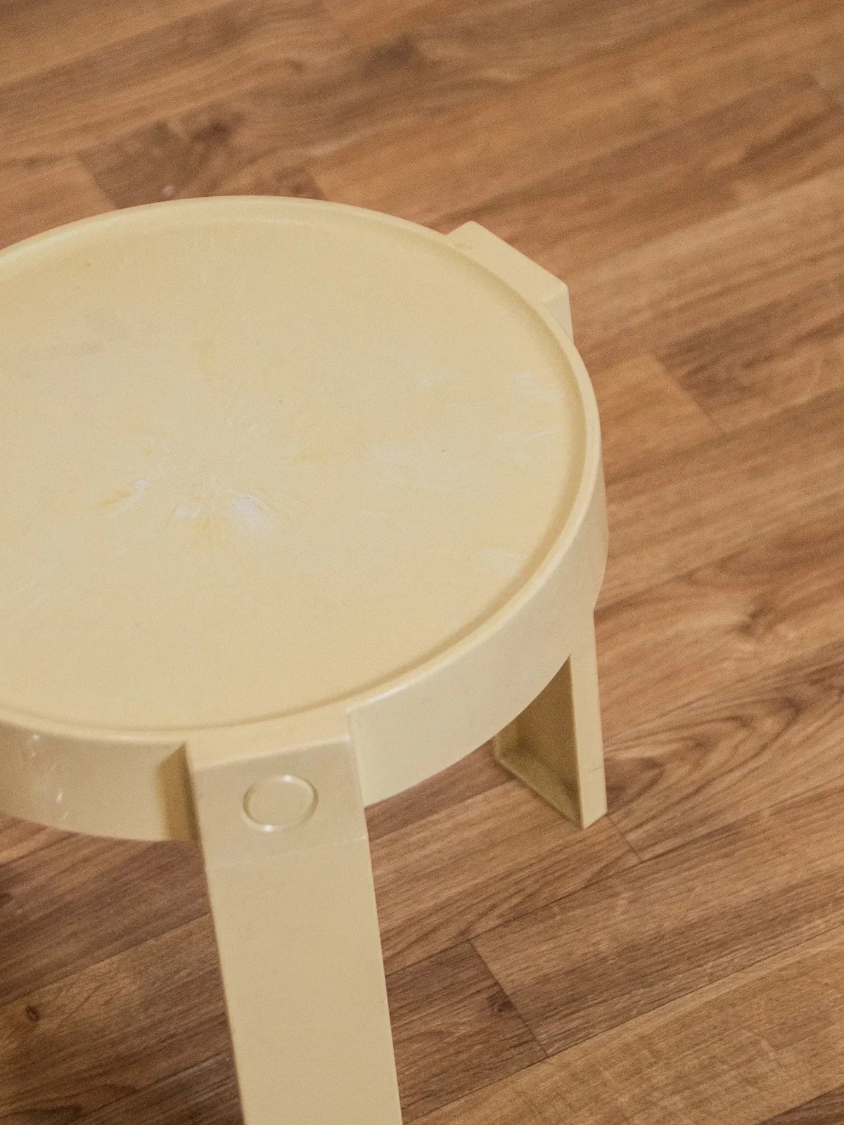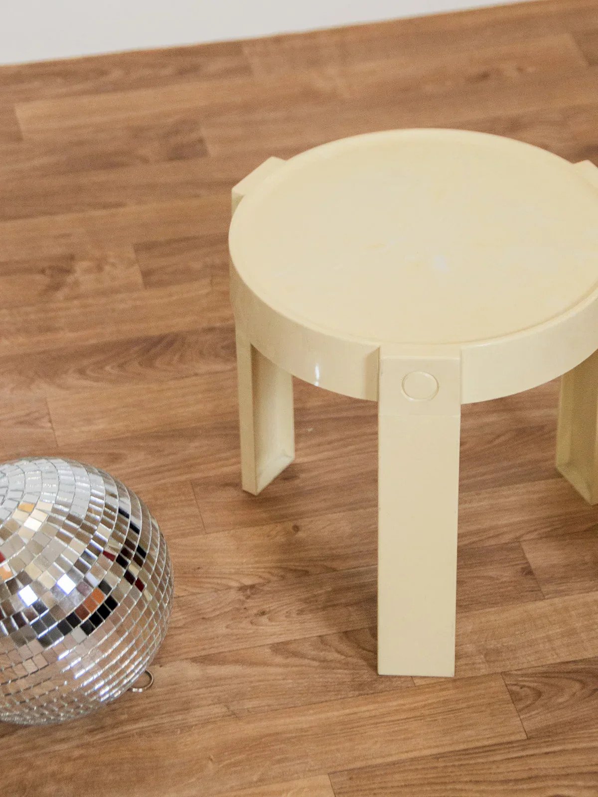 Add a vintage touch to your interior with the Flair side table for Prisunic from the 1970s. Featuring an off-white finish, it blends harmoniously into any decor. Its clean design and elegant lines make this table a practical and aesthetic decorative element, perfect for brightening up your living room or office. Functional and chic, it will appeal to retro style enthusiasts. Light wear on the tabletop. Online exclusive, the meeting will take place at your home! Height: 32 cm Diameter: 30 cm Condition: Used: Item that has been used. Item showing some superficial wear marks, fully operational and functioning correctly. It may be a demonstration model or an item returned to the store after a short period of use, with possible imperfections. Brand: Debongout Type: Thrifted product Material: Plastic Customized: Side tables Style: Contemporary