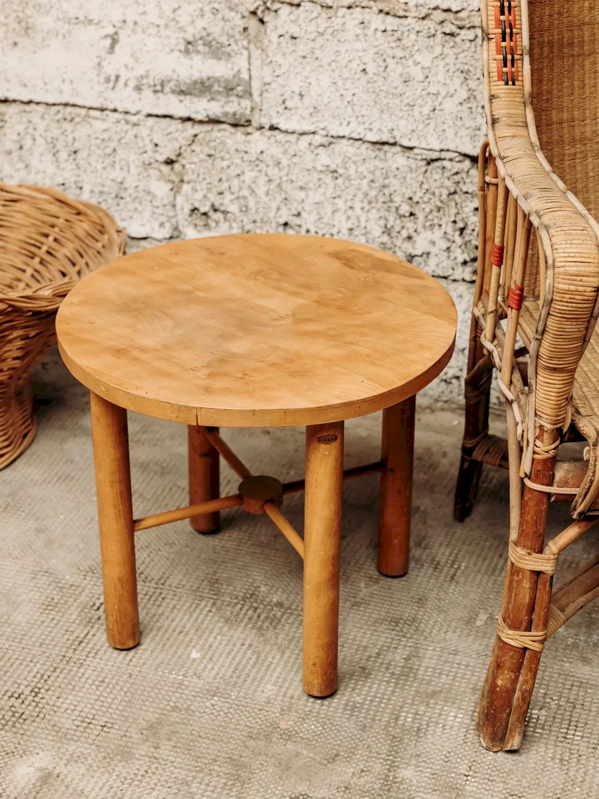 Add a touch of elegance to your interior with this small round wooden side table. Its structure with 4 straight legs connected by bars ensures perfect stability while offering a neat design. The slightly curved tabletop adds a touch of originality to enhance your spaces. Ideal for embellishing your living room or bedroom, this table combines charm and functionality brilliantly. Height: 45 cm Diameter: 50 cm Condition: Used: Item has been used. Item shows some superficial signs of wear, fully operational and functioning correctly. It may be a demonstration model or an item returned to the store after a short period of use, with possible imperfections. Brand: Debongout Type: Thrifted product Material: Wood Custom: Side tables Style: Contemporary