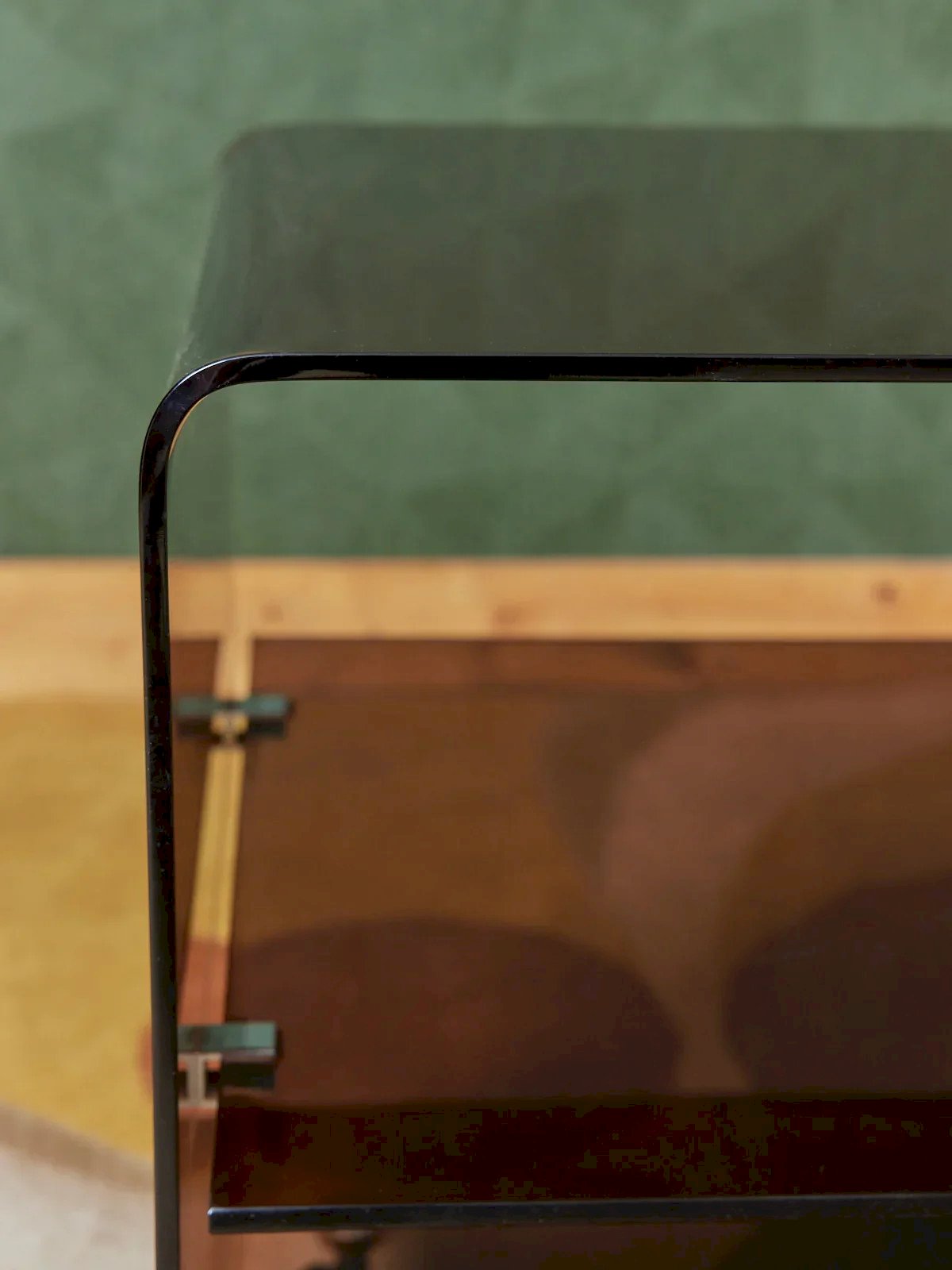 Add a contemporary touch with this smoked purple plexiglass side table on wheels, whose tinted transparency creates a subtle play of light. Its lightweight design and well-proportioned dimensions make it an ideal end table for placing a lamp, a glass, or books without weighing down the space. The acrylic material offers a fluid silhouette and is easy to maintain, while the wheels ensure practical mobility depending on the desired ambiance. Length: 40 cm Width: 40 cm Height: 47 cm Condition: Used: Item has been used. Item shows some signs of superficial wear... Used: Item has been used. Item shows some signs of superficial wear, fully operational and functioning correctly. It may be a demonstration model or a returned item after a short period of use. Any potential imperfections. Brand: Debongout Type: Vintage product Material: Plexiglass Style: Contemporary Custom: Side tables