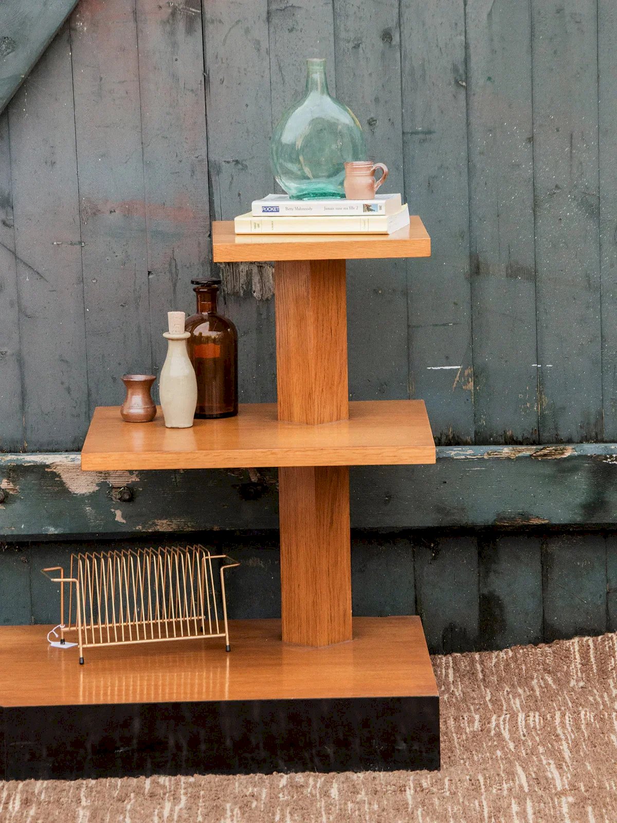 Alert gem! Add a modern touch to your interior with this stunning contemporary 3-tier furniture piece. Featuring an elegant structure with a black lower shelf and several shelves, it offers both functionality and style. Ideal for displaying your decorative items or organizing your books, this piece fits perfectly into any type of decor. Take advantage of its sleek design to enhance your space while optimizing your storage. Web exclusive, the meeting will take place at your home! Large shelf: Length: 54 cm / Width: 69 cm Middle shelf: Length: 45 cm / Width: 39 cm Small shelf: Length: 28 cm / Width: 28 cm Height: 66 cm Condition: Used: Item has been used. Item shows some signs of superficial wear... Used: Item has been used. Item shows some signs of superficial wear, fully operational and functioning correctly. It may be a demonstration model or an item returned to the store after a short period of use. any imperfections. Brand: Debongout Type: Vintage product Material: Wood Style: Contemporary Custom: Side tables