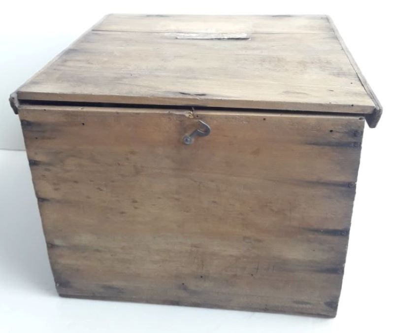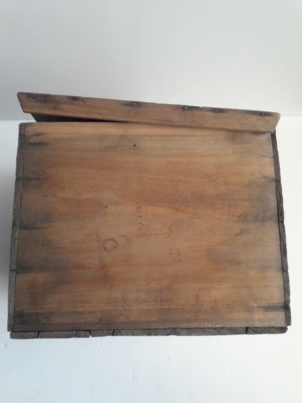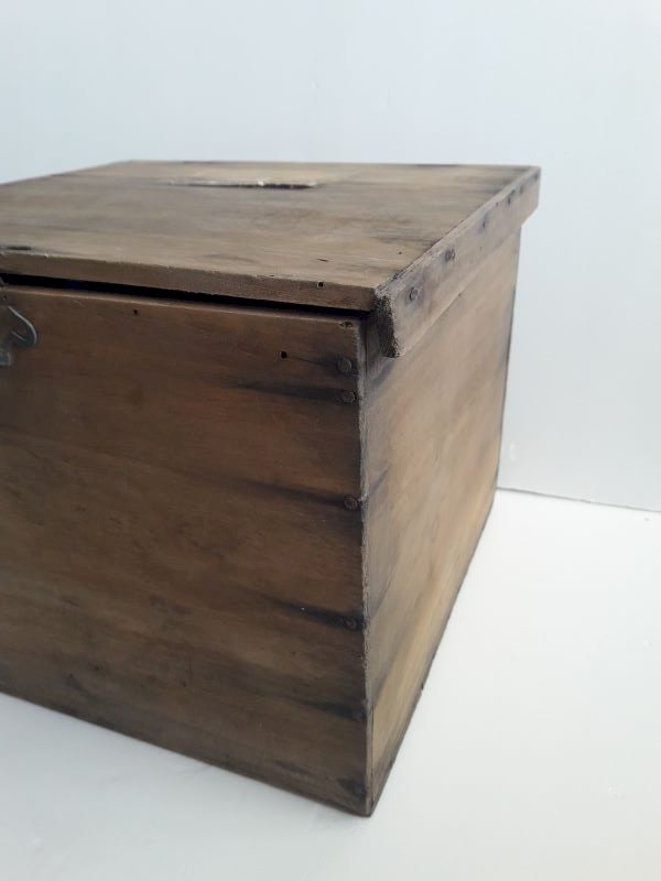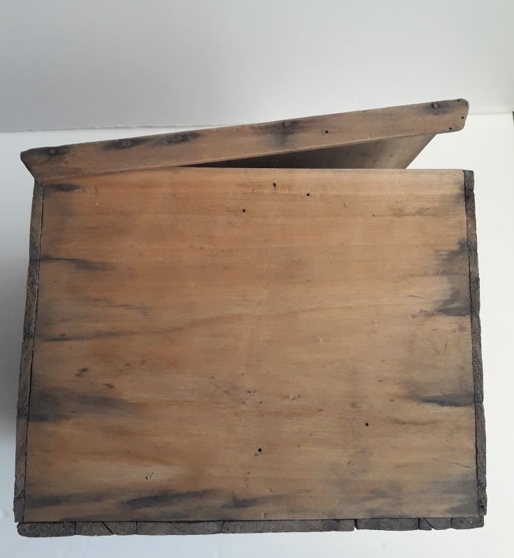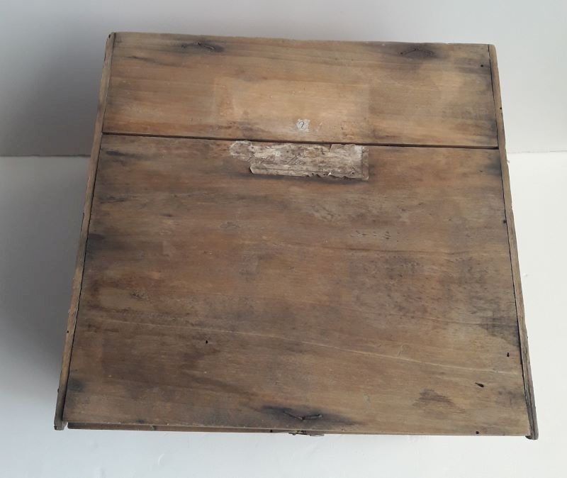 Vintage hat box, wooden chest made of poplar, square with sides of 30cm and a height of 24.5cm. This box has a remnant of an old label where one can decipher: "May 16, 190...", the last digit is not legible. It is sturdy. Its lid is attached by its original fastening system. As the wood has shrunk, the closure at the front is no longer possible with the latch. Fully washed, old traces of wood-boring insects treated for safety. Weight: 1.5kg. Ref 721. Careful shipping! Be sure to check out our other products!
