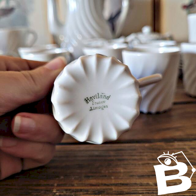 Haviland Porcelain Torse White, 12 cups and accessories. Limoges Ceramic