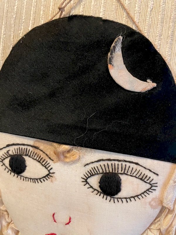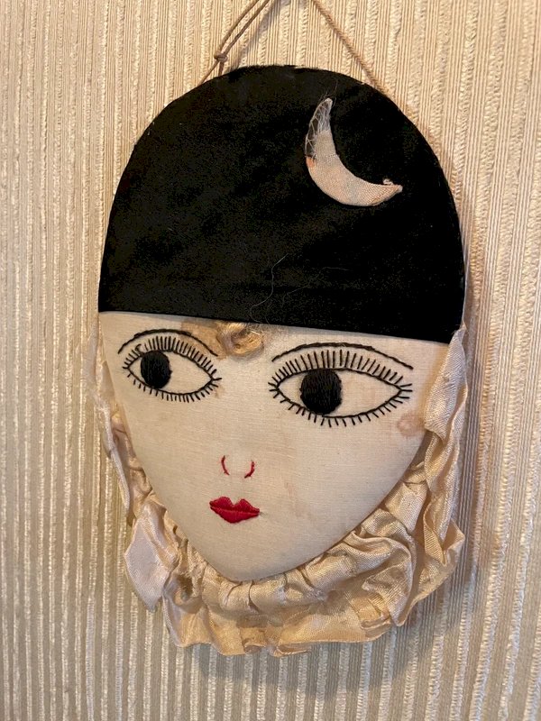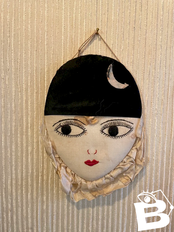 Head of Columbine to hang 1930 Art Deco Black/Beige Cotton