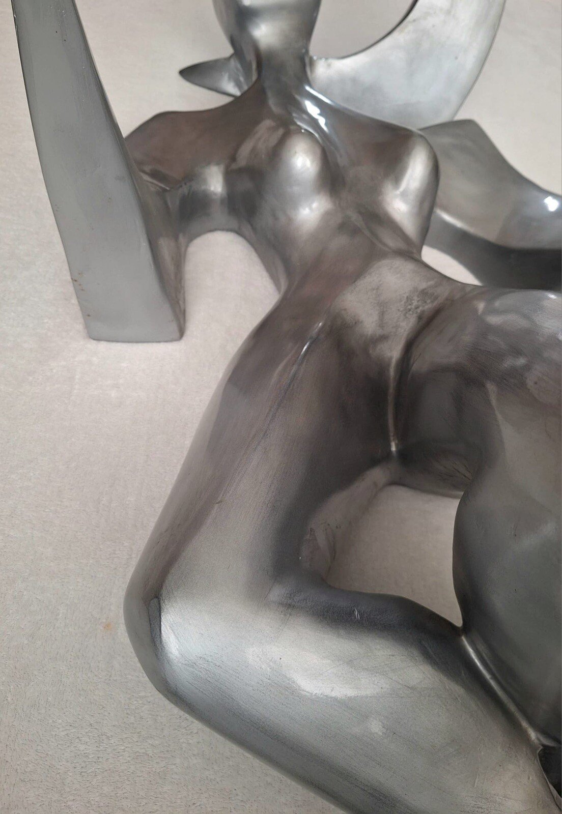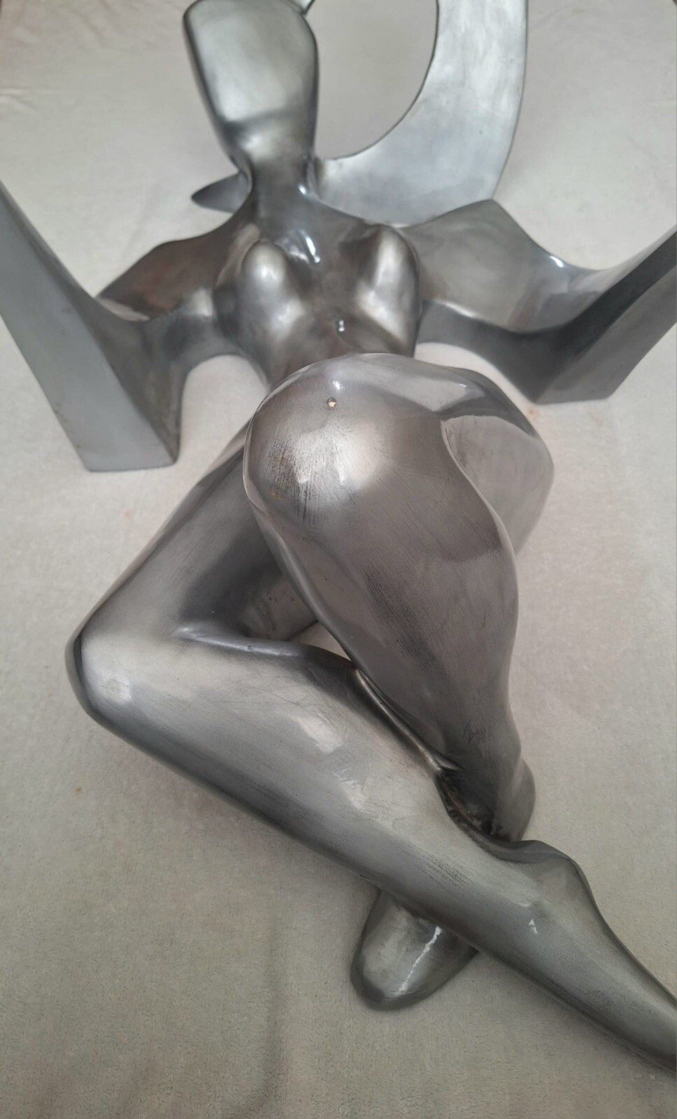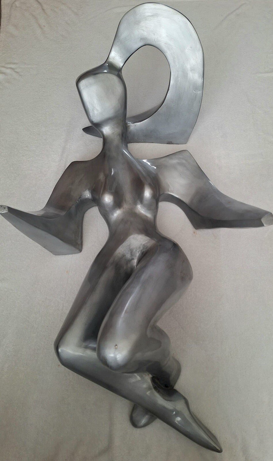 Thank you for writing to me if you would like to make me an offer. Height 120cm, large statue of a woman, vintage sculpture Dimensions 61x38xh120cm. Made of plaster. The arms, hair, and knees are at the same height, making it usable as a tray support for a coffee table. It has integrated screw sockets in the back, so it can easily be hung on a wall to be repurposed as a coat rack, etc. There are a few very discreet chips or scratches. Heavy and intriguing… Pickup at my home or delivery possible via carrier (e.g., €70 to Paris and the Paris region; contact me for other destinations). The delivery times of 2 to 4 days are set by the carrier and are therefore given as purely indicative. Modern art piece, design furniture Type: Statue, Sculpture.