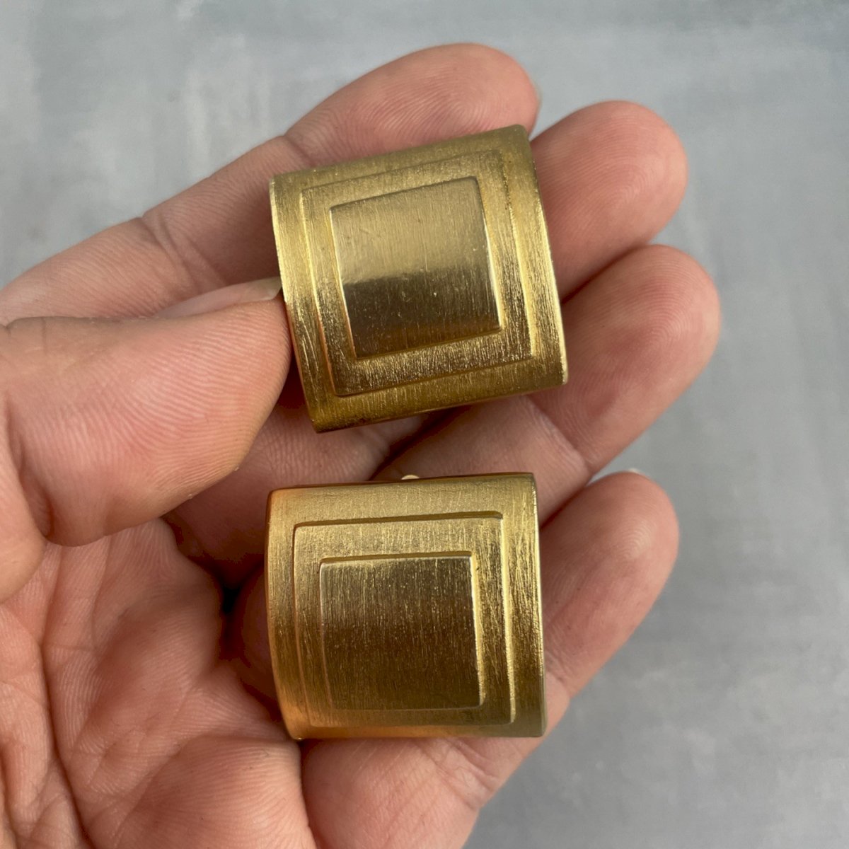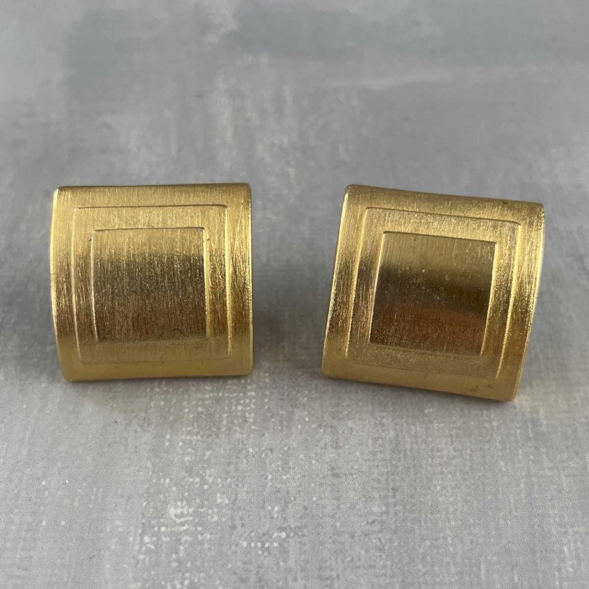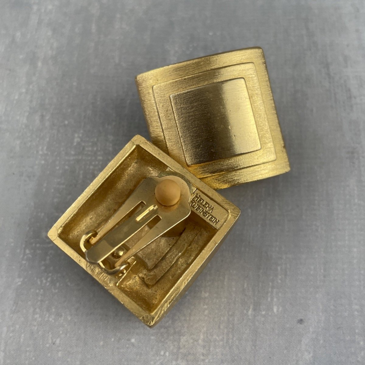 HELENA RUBINSTEIN Pair of vintage square and gold clip-on earrings Dimensions ~ 2.5 x 2.5 cm Total weight ~ 32 g Excellent condition, some scratches and light signs of use, see photos. Consider grouping your purchases to reduce shipping costs! Condition: Used Item has been worn. possible imperfections. Brand: HELENA RUBINSTEIN Dominant color: Gold Closure: Clip-on
