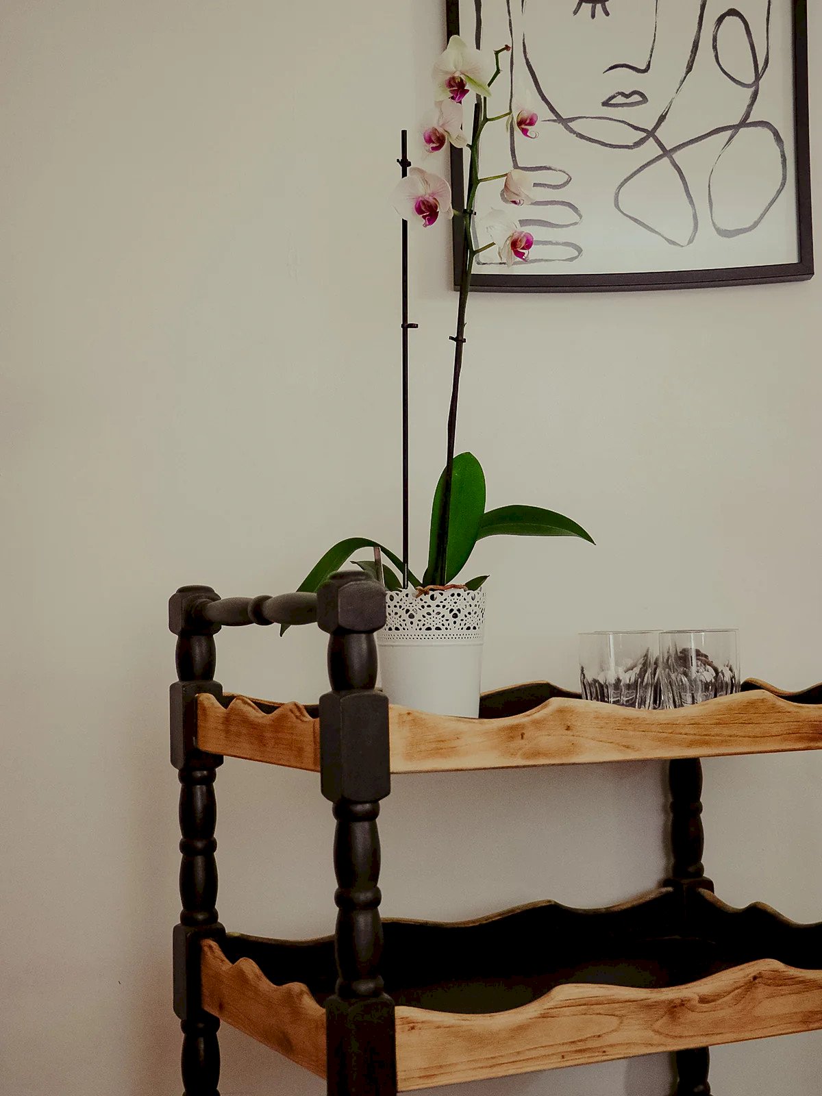 Adopt this oak trolley with a contrast of black and light wood. Its compact size and four functional wheels facilitate movement between the kitchen and dining room while providing a practical surface for placing dishes, plants, or coffee makers. The warmth of oak combined with the black hue creates an elegant and friendly atmosphere, perfect for a coffee corner or as a serving cart. Length: 64 cm Width: 43 cm Height: 80 cm A brief history of the trolley The trolley, also known as a serving table, emerged in the 17th century. At that time, it was used to serve and clear dishes during meals. Equipped with wheels, it can be easily moved from one place to another, allowing for quicker table clearing by reducing the number of trips between the dining room and the kitchen. Its practicality has made the trolley an important piece of furniture, also used for serving tea or breakfast. This small, mobile side table has managed to secure a prominent place in our homes over the centuries. Condition: Used: Item has been used. Item shows some superficial signs of wear... Used: Item has been used. Item shows some superficial signs of wear, fully operational and functioning correctly. It may be a demonstration model or an item returned to the store after a short period of use. Possible imperfections. Brand: Debongout Type: Vintage product Material: Oak Style: Country Customized: Trolleys