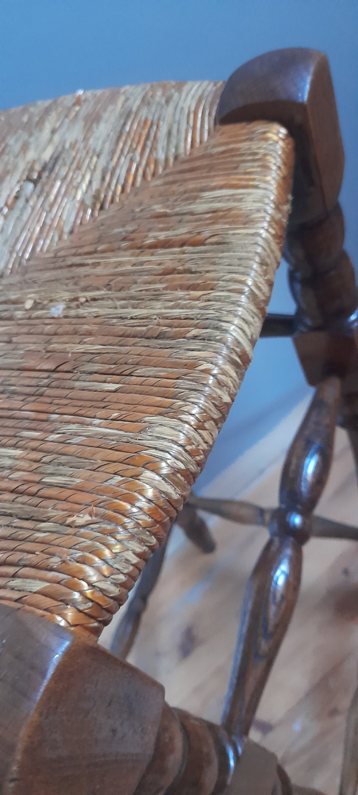 Note: the original strapping of the seat made of a wooden slat is present on one side only, on another side the slat is damaged. On 2 sides, it no longer exists, but in the overall appearance of the product, it is not very impactful and the eye quickly forgets it.