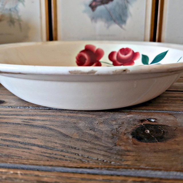 Hollow round plate Choisy Le Roi HBC model Vernon rose pattern Ceramic
