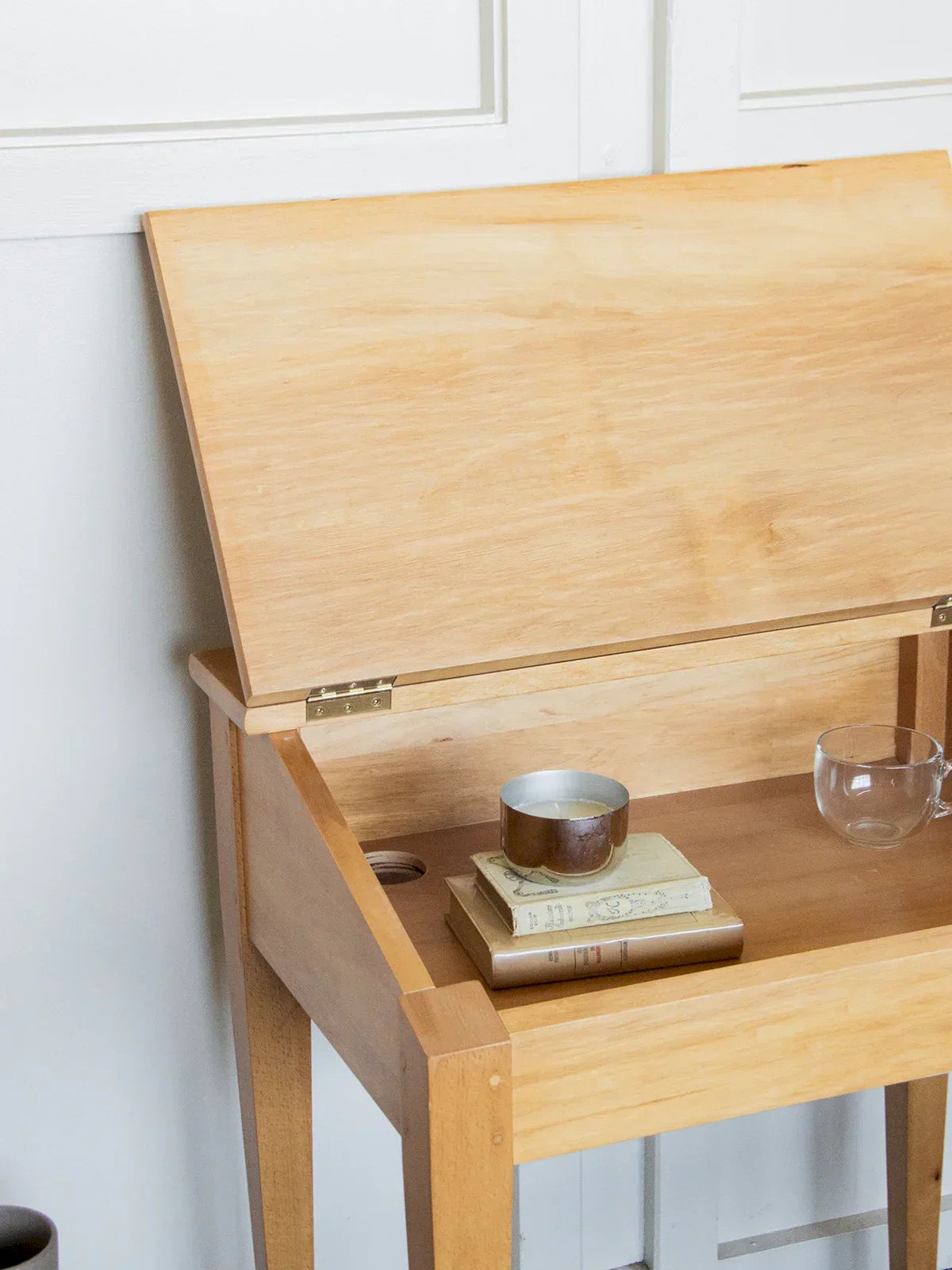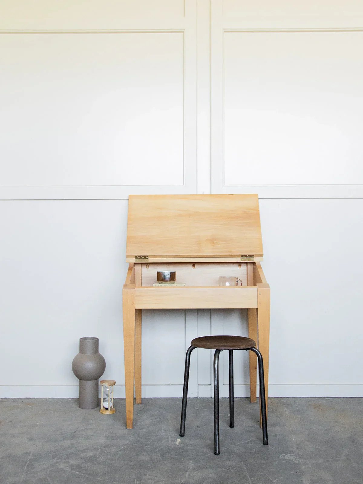 Give your child a charming workspace with this light wood desk/secretary. Its sleek and timeless design easily fits into a child's bedroom or playroom. Compact and functional, it allows for the storage of notebooks and pencils while providing a practical surface for writing or drawing. Perfect for accompanying little ones in their creative and school activities. A lovely piece of furniture that is both useful and decorative! Length: 74 cm Height of closed secretary: 82 cm Height of open secretary: 122 cm Depth: 52 cm Condition: Used: Item has been used. Item shows some signs of superficial wear... Used: Item has been used. Item shows some signs of superficial wear, fully operational and functioning correctly. It may be a demonstration model or an item returned to the store after a short period of use. Any imperfections. Brand: Debongout Type: Thrifted product Material: Wood Style: Contemporary Customizable: Secretaries