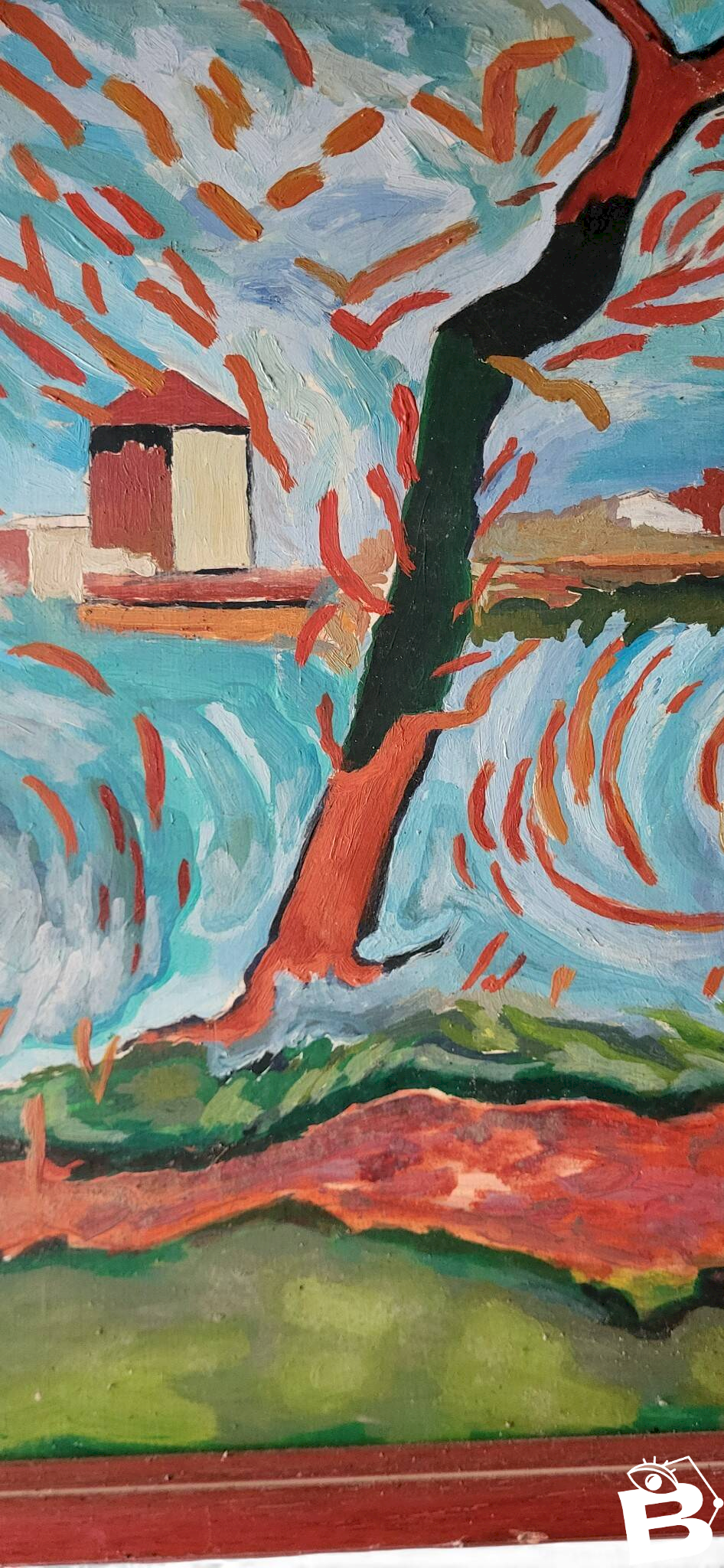 HSP painting after Vlaminck / wooden frame painted redDimensions 50*56 cmDepth 2.5 cmIn good condition / small chip on the frame.Careful packaging and fast delivery. L: 56 W: 2.5 H: 50